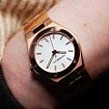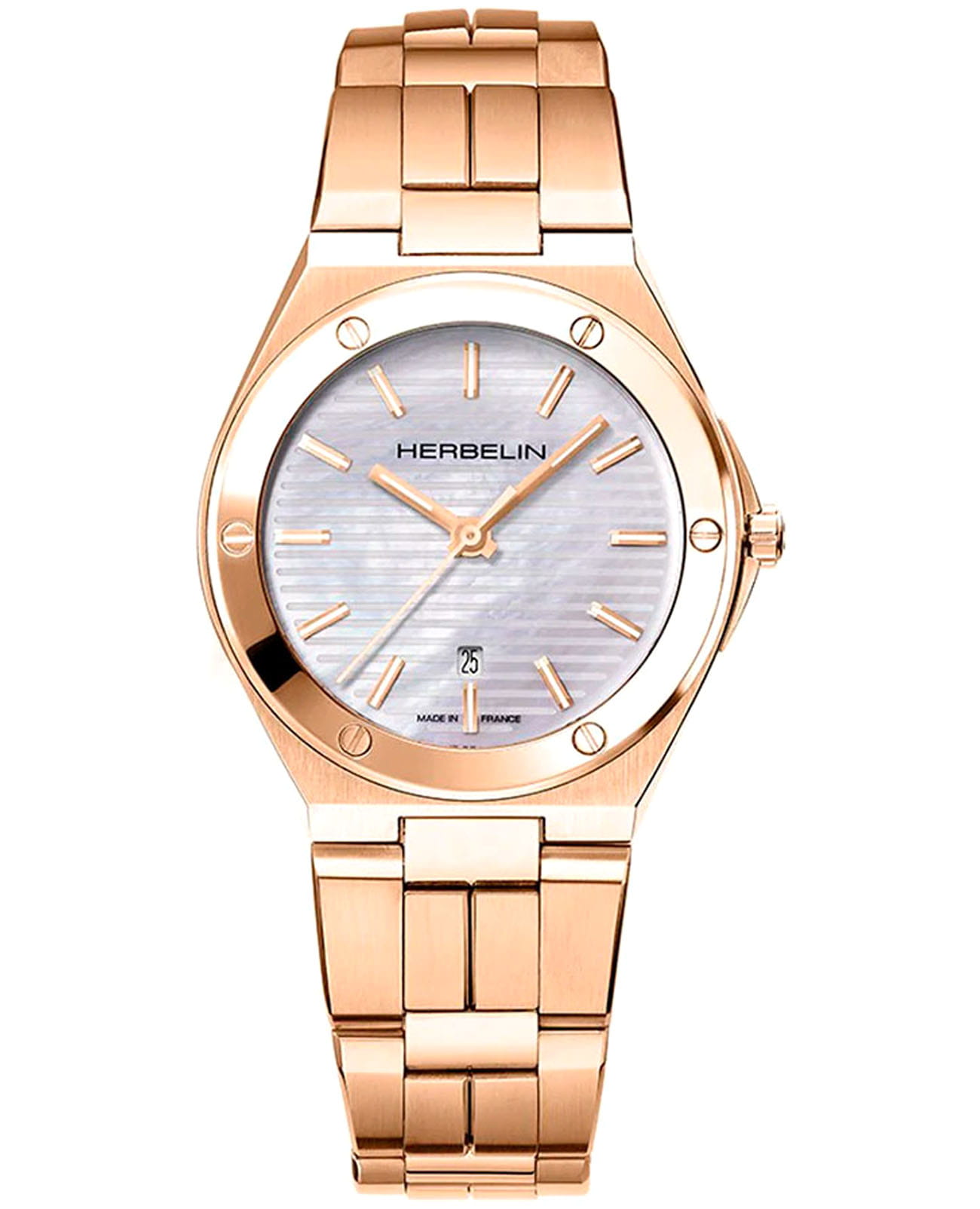 Женские кварцевые часы Herbelin Cap Camarat 14545BPR19 – отражающий идеальное сочетание современного дизайна, надёжности и функциональности. Элегантный облик станет превосходным завершением образа, наделив его индивидуальным характером. Корпус из нержавеющей стали с PVD-покрытиемPVDУльтратонкое покрытие наносится в технике вакуумного напыления, сочетает в себе нитрид титана особой прочности со слоем золота или оксида хрома. Несёт в себе декоративную или защитную функцию. цвета розового золота, диаметром 33 мм и толщиной 7.1 мм, идеально сбалансирован и элегантен. Сапфировое стеклоСапфировое стеклоПрочный и надёжный материал из кристалла сапфира синтетического происхождения, характеризующийся особой твёрдостью и устойчивостью к царапинам и повреждениям. защищает циферблат от царапин и устойчивое к механическим повреждениям. БезельБезельВнешний ободок, закрепляющий стекло. В спортивных часах так называется поворотное кольцо с делениями на циферблате, выполняет роль таймера – замеряет отрезки времени на шкале. Неподвижный безель – элемент декора. Однонаправленно вращающийся безель на дайверских часах позволяет фиксировать моменты погружения и выныривания на поверхность. украшен винтами, заводная головка с защитой. Окошко даты находится в положении 6 часов. Стрелки и метки с люминесцентным покрытиемЛюминесцентное покрытиеПозволяет считывать показания времени в темноте. Производители наносят на стрелки, часовые индексы, безель или поверхность циферблата светонакопительный состав, дающий холодное свечение.. Стальной браслет с PVD-покрытиемPVDУльтратонкое покрытие наносится в технике вакуумного напыления, сочетает в себе нитрид титана особой прочности со слоем золота или оксида хрома. Несёт в себе декоративную или защитную функцию. на застёжке-бабочке с кнопкамиЗастёжка "бабочка"Такой вид застёжки дополняется предохранителями, помогающими избежать случайного раскрытия браслета. Обладают изящным исполнением. обеспечивает комфортное ношение. Водозащита 100 метров позволит плавать, нырять и заниматься другими водными видами спорта. Эта модель – отличный выбор для тех, кто ищет сочетание стиля, качества и функциональности. Часы станут не только полезным аксессуаром, но и выразительным элементом вашего имиджа.