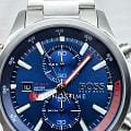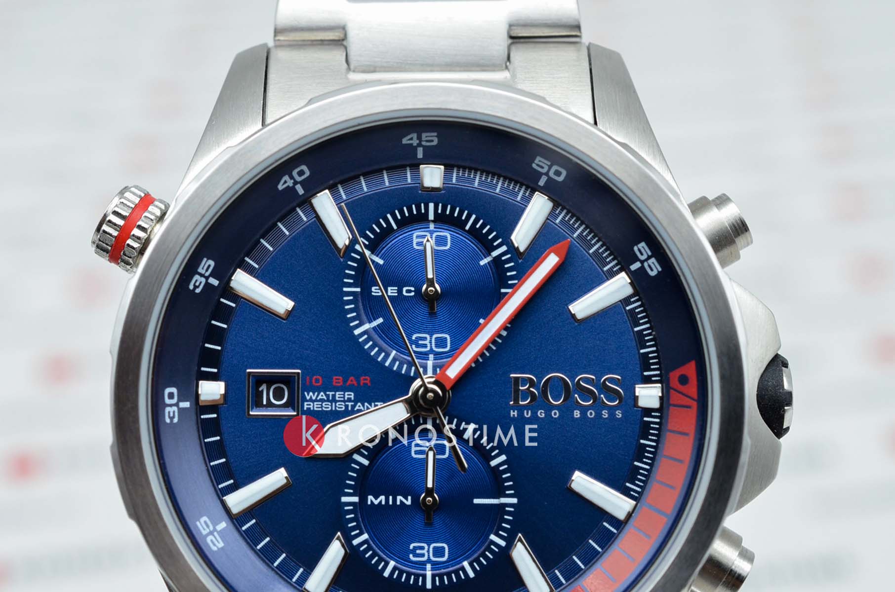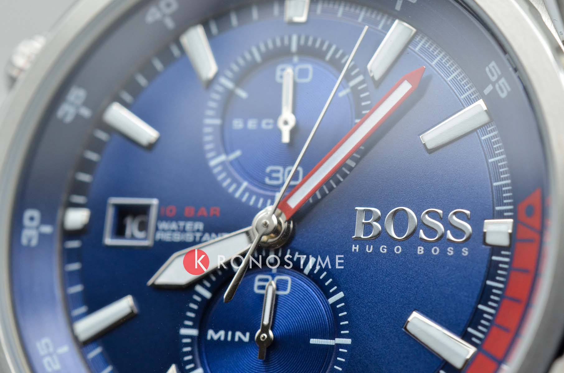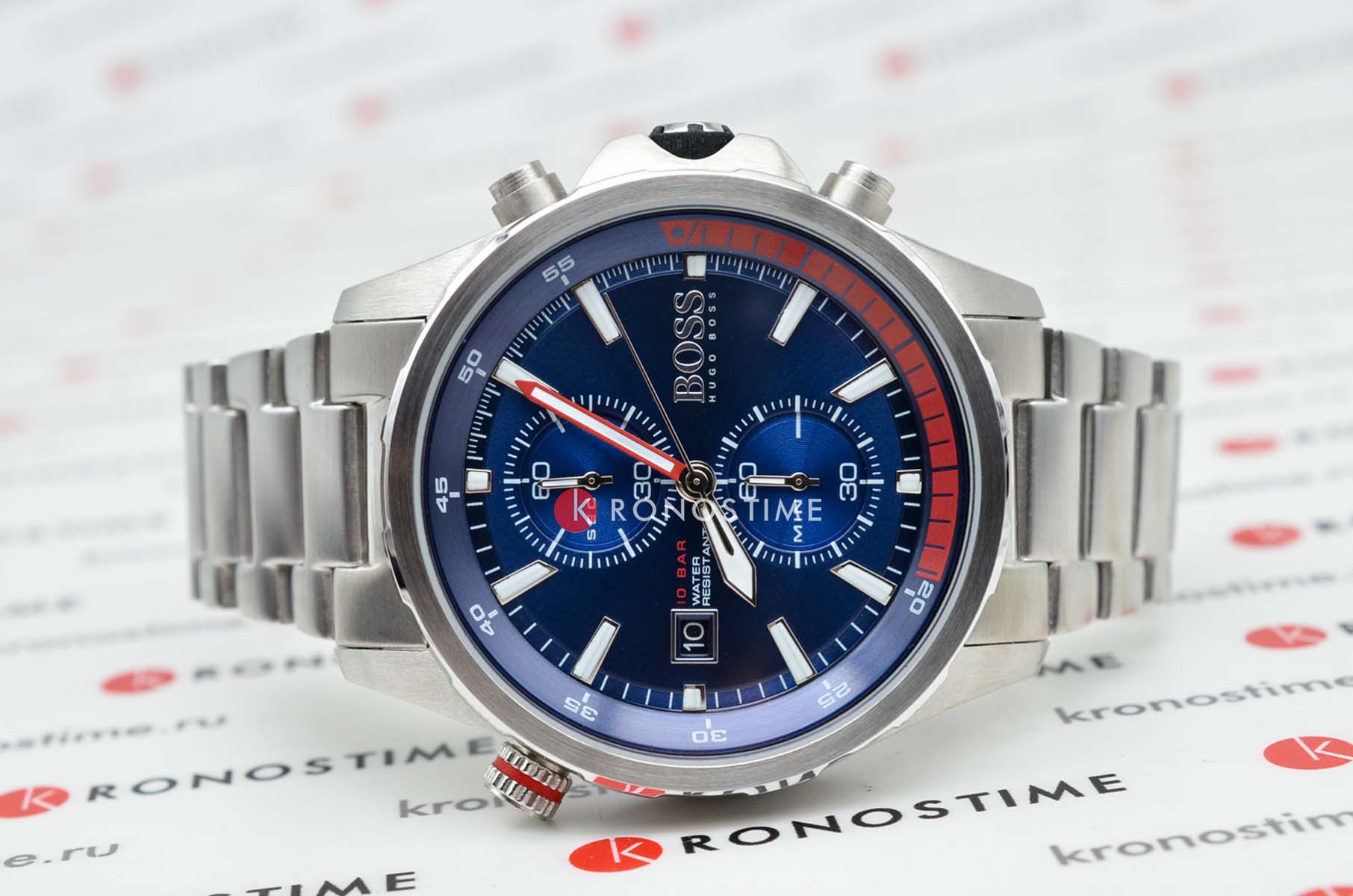 Мужские часы Hugo Boss Globetrotter HB1513823 представлены в 46-мм корпусе из нержавеющей стали 316L с синим циферблатом. Оснащены кварцевым механизмом с функцией хронографаХронографФункция позволяет измерять отрезки времени с особой точностью: часы, минуты, секунды. Верным признаком хронографа является наличие на циферблате 3 дополнительных окошек-счётчиков. и тахиметромТахиметрРазмеченная шкала, располагается на ободке или безеле часов. Тахиметр позволяет рассчитать скорость на определённом участке пути, расстояние измеряется в километрах или милях. на внутреннем безелеБезельВнешний ободок, закрепляющий стекло. В спортивных часах так называется поворотное кольцо с делениями на циферблате, выполняет роль таймера – замеряет отрезки времени на шкале. Неподвижный безель – элемент декора. Однонаправленно вращающийся безель на дайверских часах позволяет фиксировать моменты погружения и выныривания на поверхность.. Циферблат защищен устойчивым к царапинам минеральным стекломМинеральное стеклоМинеральное стекло представляет собой искусственно выращенный минерал кварца. Такое стекло отличается особой устойчивостью к повреждениям и царапинам. Уступает по некоторым качествам сапфировому стеклу.. Стальной браслет дополнен раскладной застёжкойРаскладная застёжкаТакой тип застёжки используется только на браслетах из металла. Она никогда не раскрывается полностью, происходит разделение на 2 и более частей. Раскладывающая застёжка снизит вероятность потери часов к минимуму.. Водонепроницаемость 100 метров (10 ATM) позволяет использовать часы для плавания. Дополнительные функции включают окошко даты и 24-часовой индикатор.