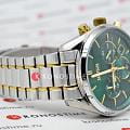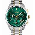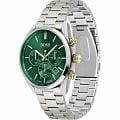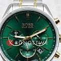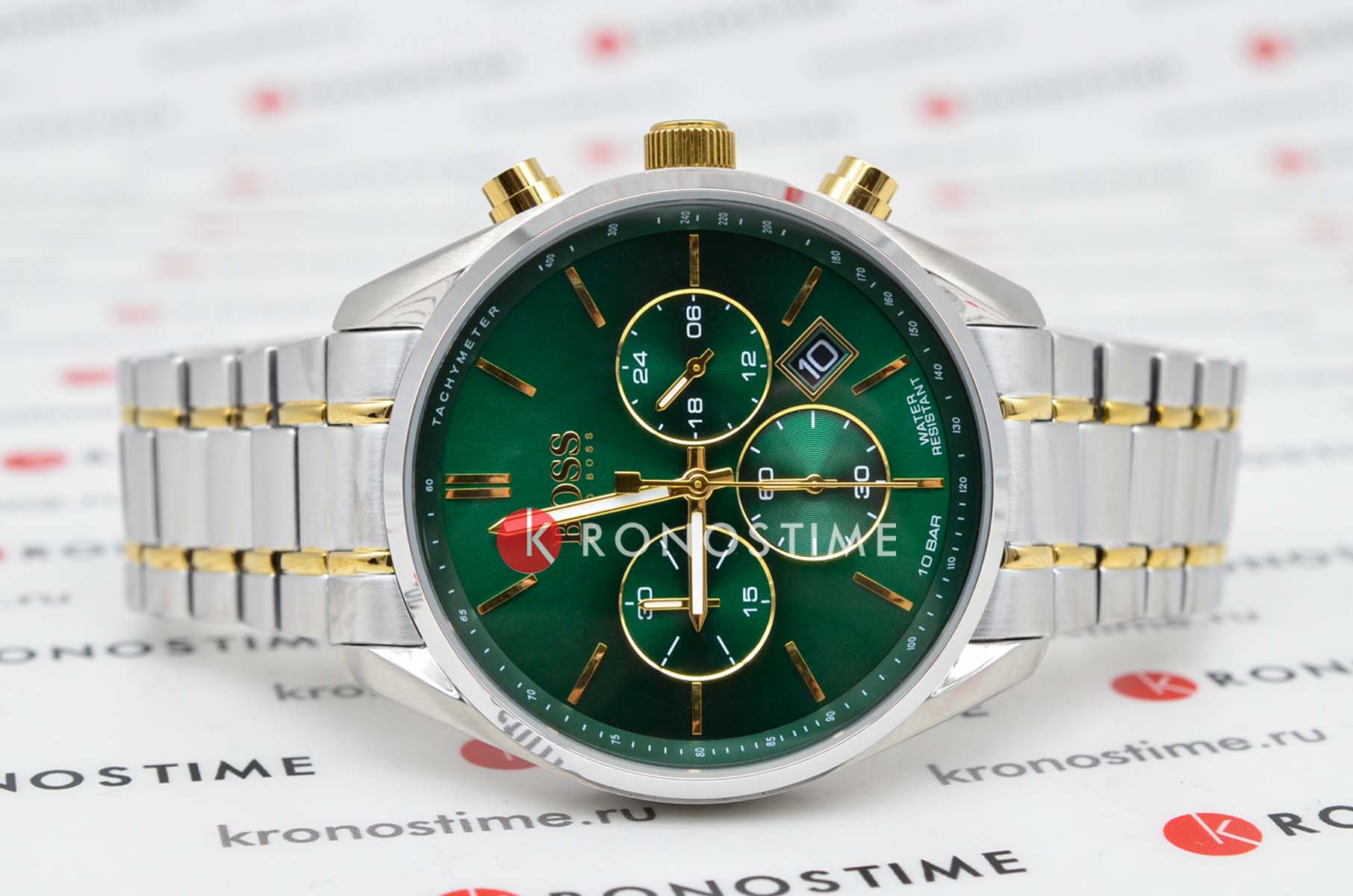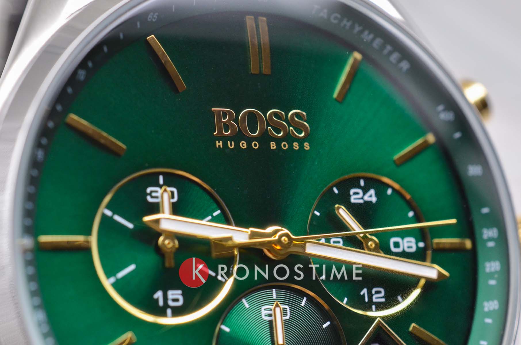 Мужские часы Hugo Boss Champion HB1513878 представлены в круглом 44-мм корпусе из нержавеющей стали. Изысканные часы оснащены кварцевым механизмом с функциями хронографаХронографФункция позволяет измерять отрезки времени с особой точностью: часы, минуты, секунды. Верным признаком хронографа является наличие на циферблате 3 дополнительных окошек-счётчиков.,  тахиметраТахиметрРазмеченная шкала, располагается на ободке или безеле часов. Тахиметр позволяет рассчитать скорость на определённом участке пути, расстояние измеряется в километрах или милях. и секундомераСекундомерСекундоме́р — прибор, способный измерять интервалы времени с точностью до долей секунды., а также индикацией даты. Эффектный зеленый циферблат с метками в виде штрихов защищен устойчивым к царапинам минеральным стекломМинеральное стеклоМинеральное стекло представляет собой искусственно выращенный минерал кварца. Такое стекло отличается особой устойчивостью к повреждениям и царапинам. Уступает по некоторым качествам сапфировому стеклу.. Браслет из стали серебристого цвета c PVD-покрытиемPVDУльтратонкое покрытие наносится в технике вакуумного напыления, сочетает в себе нитрид титана особой прочности со слоем золота или оксида хрома. Несёт в себе декоративную или защитную функцию. дополнен раскладной застёжкойРаскладная застёжкаТакой тип застёжки используется только на браслетах из металла. Она никогда не раскрывается полностью, происходит разделение на 2 и более частей. Раскладывающая застёжка снизит вероятность потери часов к минимуму.. Водонепроницаемость 100 метров (10 ATM) обеспечивает защиту от брызг и дождя. Hugo Boss Champion HB1513878 — это не просто часы, а настоящее произведение часового искусства, способное подчеркнуть вашу индивидуальность и статус.