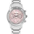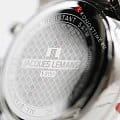 Женские часы-хронографХронографФункция позволяет измерять отрезки времени с особой точностью: часы, минуты, секунды. Верным признаком хронографа является наличие на циферблате 3 дополнительных окошек-счётчиков. c секундомеромСекундомерСекундоме́р — прибор, способный измерять интервалы времени с точностью до долей секунды. Jacques Lemans Venice 1-2151L, кварцевый механизм с высокой точностью. Минеральное стеклоМинеральное стеклоМинеральное стекло представляет собой искусственно выращенный минерал кварца. Такое стекло отличается особой устойчивостью к повреждениям и царапинам. Уступает по некоторым качествам сапфировому стеклу. устойчивое к мелким механическим повреждениям. Корпус из нержавеющей стали. Широкий безельБезельВнешний ободок, закрепляющий стекло. В спортивных часах так называется поворотное кольцо с делениями на циферблате, выполняет роль таймера – замеряет отрезки времени на шкале. Неподвижный безель – элемент декора. Однонаправленно вращающийся безель на дайверских часах позволяет фиксировать моменты погружения и выныривания на поверхность. с гранями. На циферблате расположены три дополнительных индикатора. Окошко даты находится в положении между 4 и 5 часов. Стрелки с люминесцентным покрытиемЛюминесцентное покрытиеПозволяет считывать показания времени в темноте. Производители наносят на стрелки, часовые индексы, безель или поверхность циферблата светонакопительный состав, дающий холодное свечение.. Каждая накладная риска украшена кристаллом Swarowski. Класс водозащиты: 50 метров, позволит защитить корпус от случайных брызг или капель дождя. Браслет из нержавеющей стали на раскладной застёжкеРаскладная застёжкаТакой тип застёжки используется только на браслетах из металла. Она никогда не раскрывается полностью, происходит разделение на 2 и более частей. Раскладывающая застёжка снизит вероятность потери часов к минимуму..
