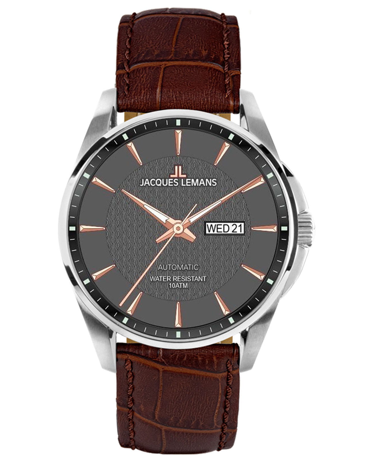 Мужские часы Jacques Lemans Classic 1-2154C. Кварцевый механизм с высокой точностью. Минеральное стеклоМинеральное стеклоМинеральное стекло представляет собой искусственно выращенный минерал кварца. Такое стекло отличается особой устойчивостью к повреждениям и царапинам. Уступает по некоторым качествам сапфировому стеклу. устойчивое к появлению царапин, обладающее высокой прозрачностью. Класс водозащиты: 100 метров, позволит плавать, нырять и заниматься другими водными видами спорта. Корпус часов изготовлен из нержавеющей стали. На циферблате окошко даты находится в положении 3 часа. Стрелки с люминесцентным покрытиемЛюминесцентное покрытиеПозволяет считывать показания времени в темноте. Производители наносят на стрелки, часовые индексы, безель или поверхность циферблата светонакопительный состав, дающий холодное свечение.. Ремешок из натуральной кожи на стандартной застежке.