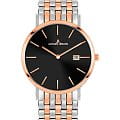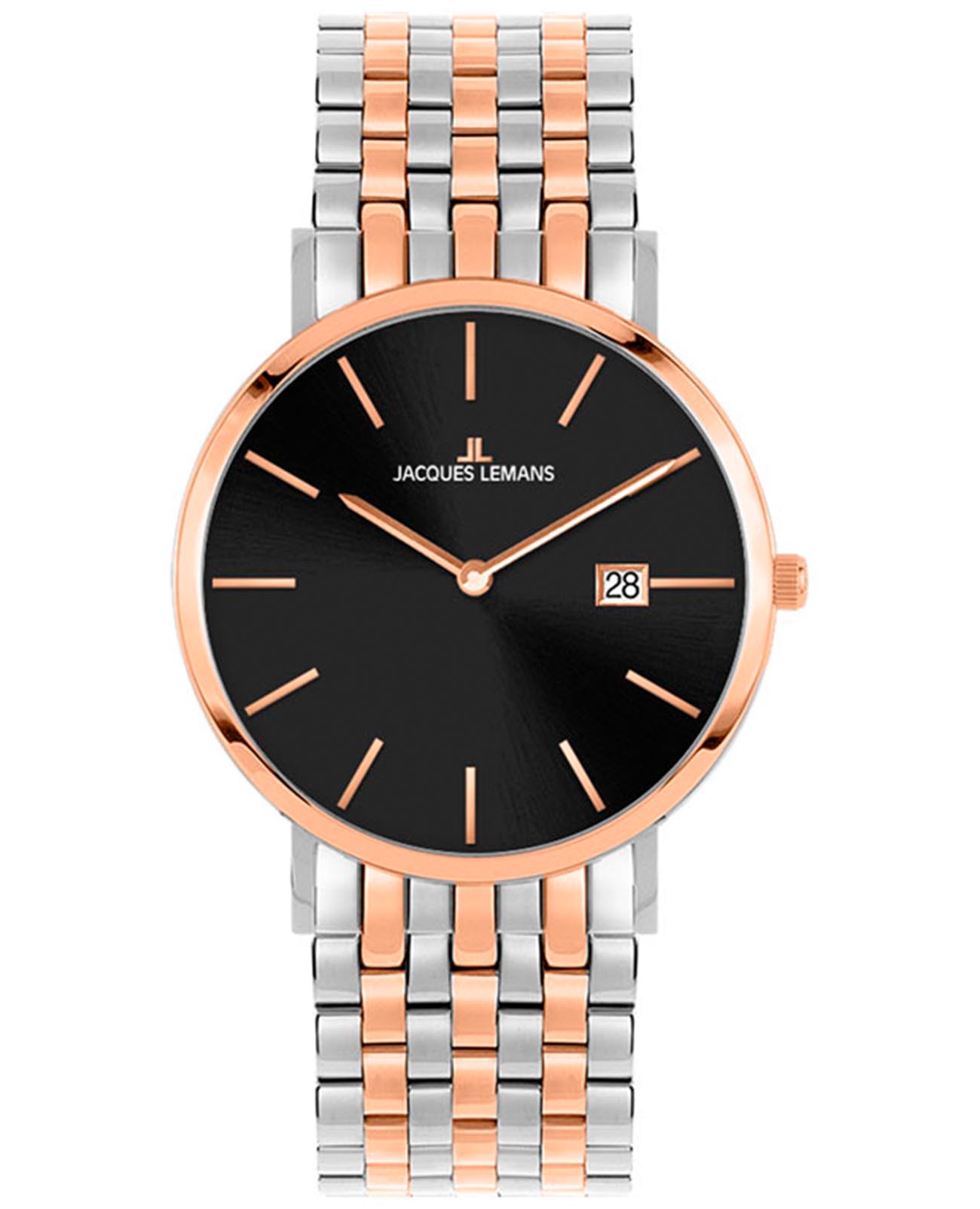 Австрийские часы Jacques Lemans Classic 1-2171J, кварцевый механизм с высокой точностью. Класс водозащиты: 50 метров, позволит защитить корпус от случайных брызг или капель дождя. Корпус часов изготовлен из нержавеющей стали. БезельБезельВнешний ободок, закрепляющий стекло. В спортивных часах так называется поворотное кольцо с делениями на циферблате, выполняет роль таймера – замеряет отрезки времени на шкале. Неподвижный безель – элемент декора. Однонаправленно вращающийся безель на дайверских часах позволяет фиксировать моменты погружения и выныривания на поверхность. с PVD-покрытиемPVDУльтратонкое покрытие наносится в технике вакуумного напыления, сочетает в себе нитрид титана особой прочности со слоем золота или оксида хрома. Несёт в себе декоративную или защитную функцию.. Минеральное стеклоМинеральное стеклоМинеральное стекло представляет собой искусственно выращенный минерал кварца. Такое стекло отличается особой устойчивостью к повреждениям и царапинам. Уступает по некоторым качествам сапфировому стеклу. устойчивое к появлению царапин, обладающее высокой прозрачностью. Стальной браслет с частичным PVD-покрытиемPVDУльтратонкое покрытие наносится в технике вакуумного напыления, сочетает в себе нитрид титана особой прочности со слоем золота или оксида хрома. Несёт в себе декоративную или защитную функцию. на застёжке-бабочке с кнопкамиЗастёжка "бабочка"Такой вид застёжки дополняется предохранителями, помогающими избежать случайного раскрытия браслета. Обладают изящным исполнением. . Окошко даты находится в положении 3 часа.