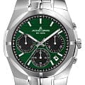 Женские кварцевые часы-хронографХронографФункция позволяет измерять отрезки времени с особой точностью: часы, минуты, секунды. Верным признаком хронографа является наличие на циферблате 3 дополнительных окошек-счётчиков. Jacques Lemans 1-2183D с минеральным стекломМинеральное стеклоМинеральное стекло представляет собой искусственно выращенный минерал кварца. Такое стекло отличается особой устойчивостью к повреждениям и царапинам. Уступает по некоторым качествам сапфировому стеклу.. Корпус выполнен из нержавеющей стали. Стрелки и метки с люминесцентным покрытиемЛюминесцентное покрытиеПозволяет считывать показания времени в темноте. Производители наносят на стрелки, часовые индексы, безель или поверхность циферблата светонакопительный состав, дающий холодное свечение.. Окошко даты находится в положении между 4 и 5 часами. Класс водозащиты: 100 метров, позволит плавать, нырять и заниматься другими водными видами спорта.