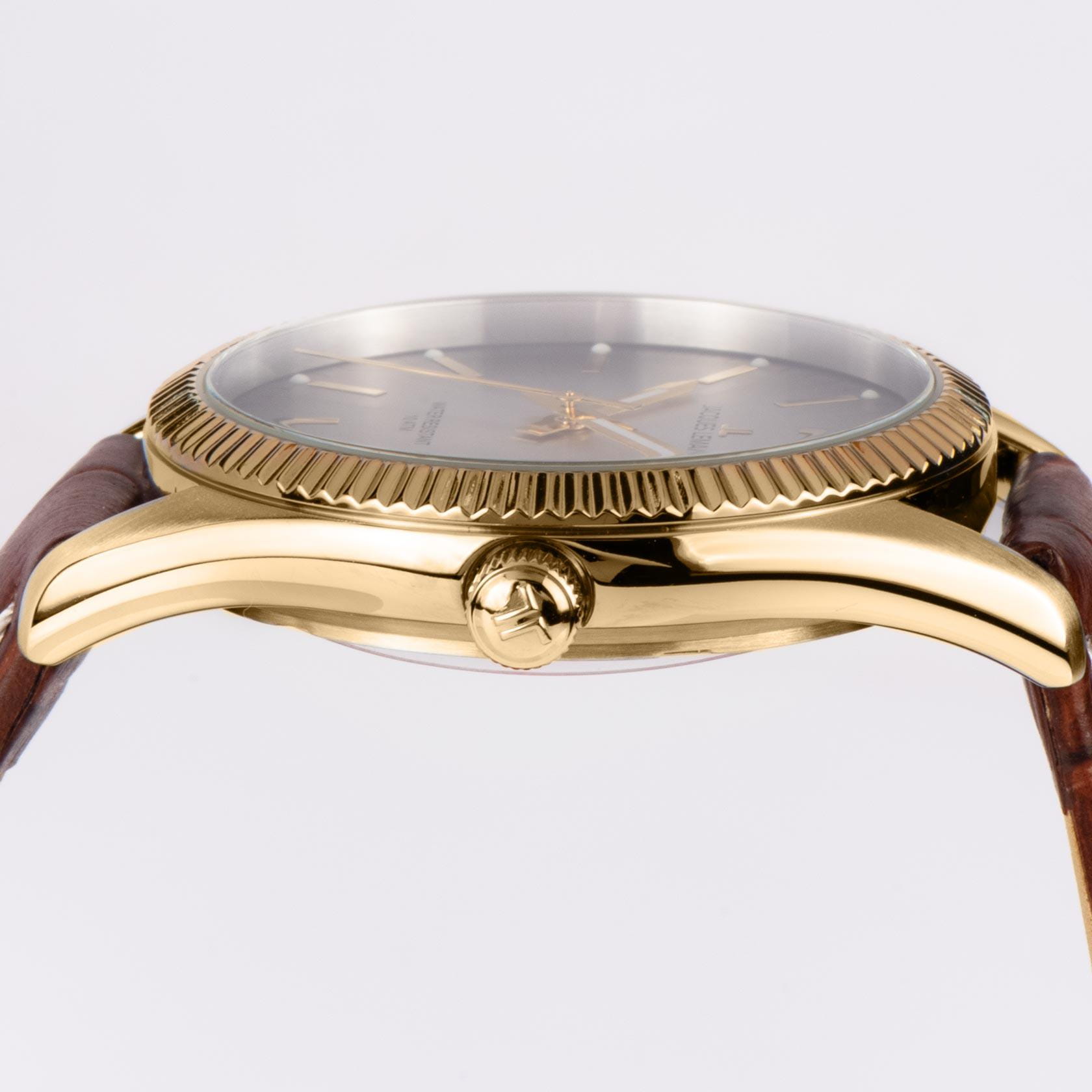 Мужские часы Jacques Lemans Derby 50-3X с минеральным стекломМинеральное стеклоМинеральное стекло представляет собой искусственно выращенный минерал кварца. Такое стекло отличается особой устойчивостью к повреждениям и царапинам. Уступает по некоторым качествам сапфировому стеклу., кварцевый механизм с высокой точностью. Корпус часов из нержавеющей стали с PVD-покрытиемPVDУльтратонкое покрытие наносится в технике вакуумного напыления, сочетает в себе нитрид титана особой прочности со слоем золота или оксида хрома. Несёт в себе декоративную или защитную функцию.. БезельБезельВнешний ободок, закрепляющий стекло. В спортивных часах так называется поворотное кольцо с делениями на циферблате, выполняет роль таймера – замеряет отрезки времени на шкале. Неподвижный безель – элемент декора. Однонаправленно вращающийся безель на дайверских часах позволяет фиксировать моменты погружения и выныривания на поверхность. с PVD-покрытиемPVDУльтратонкое покрытие наносится в технике вакуумного напыления, сочетает в себе нитрид титана особой прочности со слоем золота или оксида хрома. Несёт в себе декоративную или защитную функцию.. Стрелки с люминесцентным покрытиемЛюминесцентное покрытиеПозволяет считывать показания времени в темноте. Производители наносят на стрелки, часовые индексы, безель или поверхность циферблата светонакопительный состав, дающий холодное свечение.. Окошко даты в положении 3 часа. Класс водозащиты: 100 метров, позволит плавать, нырять и заниматься другими водными видами спорта. Кожаный ремешок на стандартной застежке.
