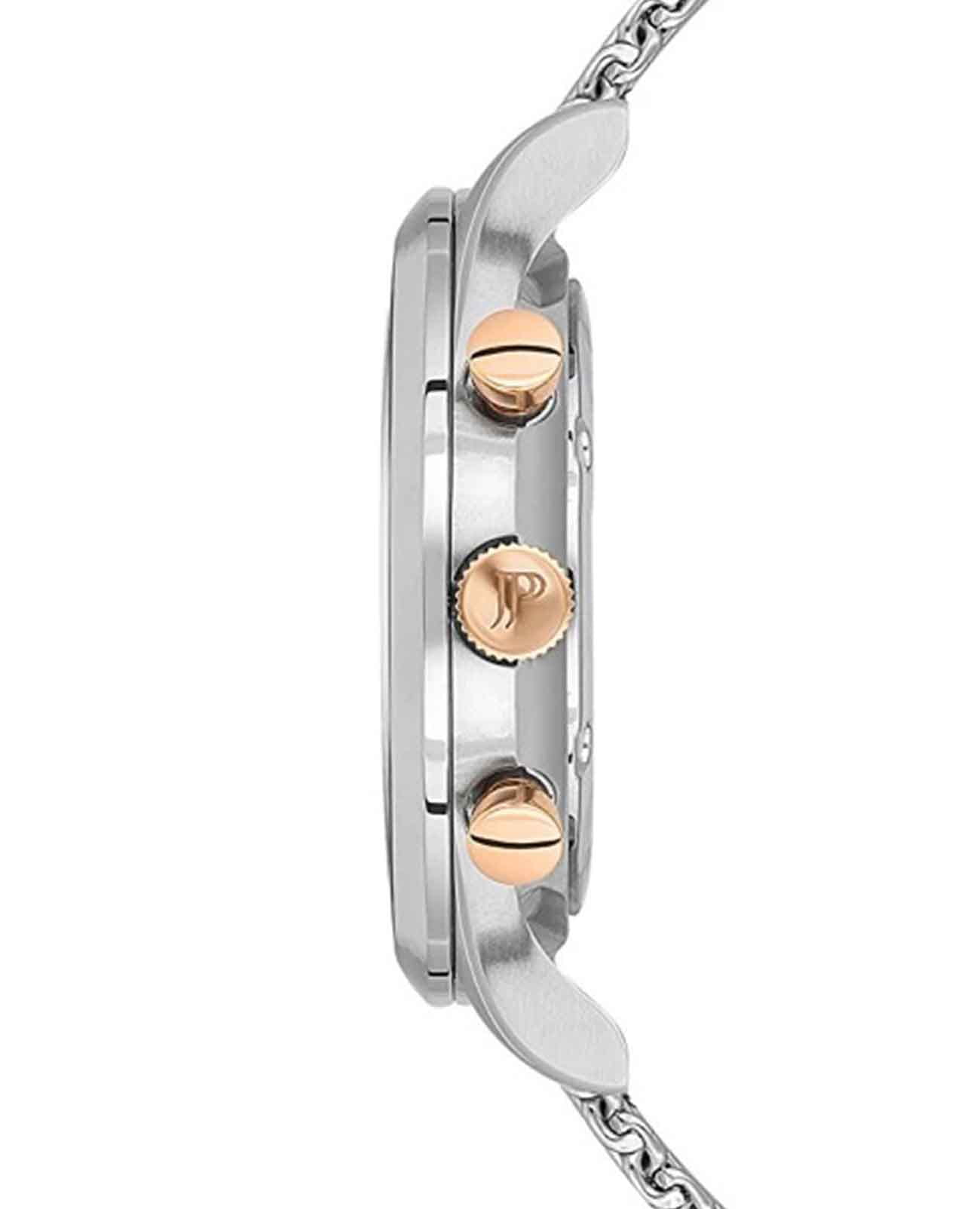 Часы Jacques Philippe Apollo JPQGC031236N — это гармоничное сочетание элегантного дизайна, современных швейцарских технологий и безупречного качества исполнения. Кварцевый механизм Ronda 5040.D.0001 обеспечивает точность хода. Модель оснащена точным кварцевым механизмом с функцией хронографаХронографФункция позволяет измерять отрезки времени с особой точностью: часы, минуты, секунды. Верным признаком хронографа является наличие на циферблате 3 дополнительных окошек-счётчиков. с секундомеромСекундомерСекундоме́р — прибор, способный измерять интервалы времени с точностью до долей секунды., что позволяет не только отслеживать время, но и использовать дополнительные возможности для активного образа жизни. Корпус диаметром 43 мм выполнен из прочной нержавеющей стали 316L, а сапфировое стеклоСапфировое стеклоПрочный и надёжный материал из кристалла сапфира синтетического происхождения, характеризующийся особой твёрдостью и устойчивостью к царапинам и повреждениям. надежно защищает синий циферблат от царапин и других повреждений. Окошко даты расположено между отметками 4 и 5 часов, что добавляет удобства в повседневном использовании. Для удобства использования в темное время суток предусмотрено люминесцентное покрытиеЛюминесцентное покрытиеПозволяет считывать показания времени в темноте. Производители наносят на стрелки, часовые индексы, безель или поверхность циферблата светонакопительный состав, дающий холодное свечение. стрелок. Браслет из нержавеющей стали с миланским плетением подчеркивает современный стиль изделия, а раскладной замокРаскладной замокДанный вариант застежки используется только на часах с металлическим браслетом. Отличительная особенность такого крепления в том, что длина браслета становится универсальной и вы можете самостоятельно отрегулировать нужный вам размер – застежка просто двигается по браслету часов. обеспечивает комфортное ношение и надежную фиксацию на запястье. Водозащита до 5 атмосфер позволяет не беспокоиться о случайных брызгах и дождевых каплях.