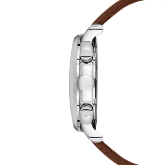 Швейцарские мужские часы-хронографХронографФункция позволяет измерять отрезки времени с особой точностью: часы, минуты, секунды. Верным признаком хронографа является наличие на циферблате 3 дополнительных окошек-счётчиков. с секундомеромСекундомерСекундоме́р — прибор, способный измерять интервалы времени с точностью до долей секунды. Jacques Philippe Vintage JPQGC191121, кварцевый механизм с высокой точностью. Сапфировое стеклоСапфировое стеклоПрочный и надёжный материал из кристалла сапфира синтетического происхождения, характеризующийся особой твёрдостью и устойчивостью к царапинам и повреждениям. устойчивое к появлению царапин, обладающее высокой прозрачностью. Корпус часов изготовлен из нержавеющей стали. На циферблате три дополнительных индикатора. Окошко даты находится между 4 и 5 часами. Класс водозащиты: 50 метров, позволит защитить корпус от случайных брызг или капель дождя. Кожаный ремешок на стандартной застёжке.