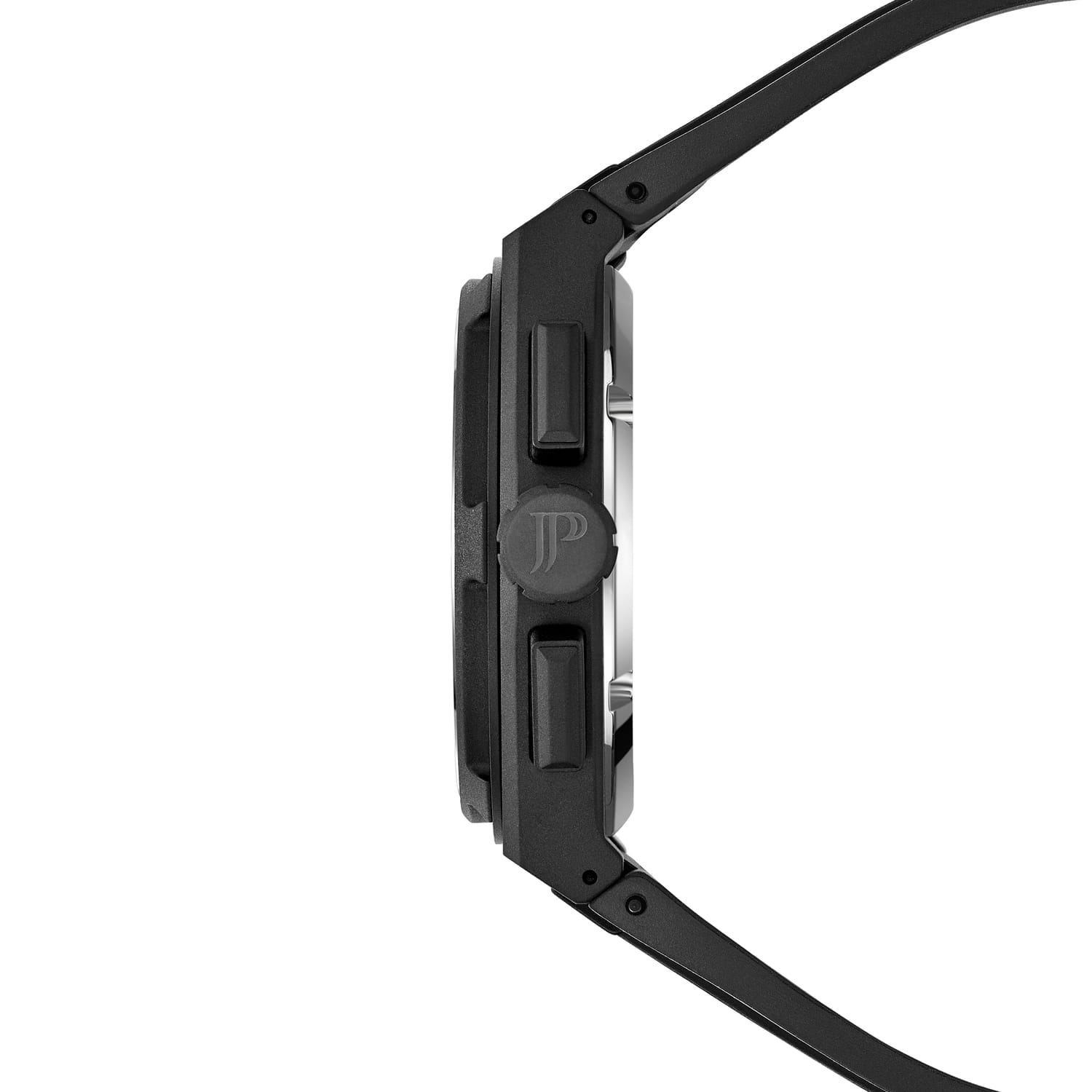 Часы Jacques Philippe JPQGC414411 из коллекции Aurora — элегантные мужские часы, сочетающие в себе швейцарское качество и современный дизайн. Корпус диаметром 42 мм выполнен из нержавеющей стали, а черный циферблат защищён сапфировым стекломСапфировое стеклоПрочный и надёжный материал из кристалла сапфира синтетического происхождения, характеризующийся особой твёрдостью и устойчивостью к царапинам и повреждениям.. БезельБезельВнешний ободок, закрепляющий стекло. В спортивных часах так называется поворотное кольцо с делениями на циферблате, выполняет роль таймера – замеряет отрезки времени на шкале. Неподвижный безель – элемент декора. Однонаправленно вращающийся безель на дайверских часах позволяет фиксировать моменты погружения и выныривания на поверхность. с PVD-покрытиемPVDУльтратонкое покрытие наносится в технике вакуумного напыления, сочетает в себе нитрид титана особой прочности со слоем золота или оксида хрома. Несёт в себе декоративную или защитную функцию.