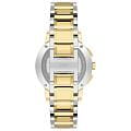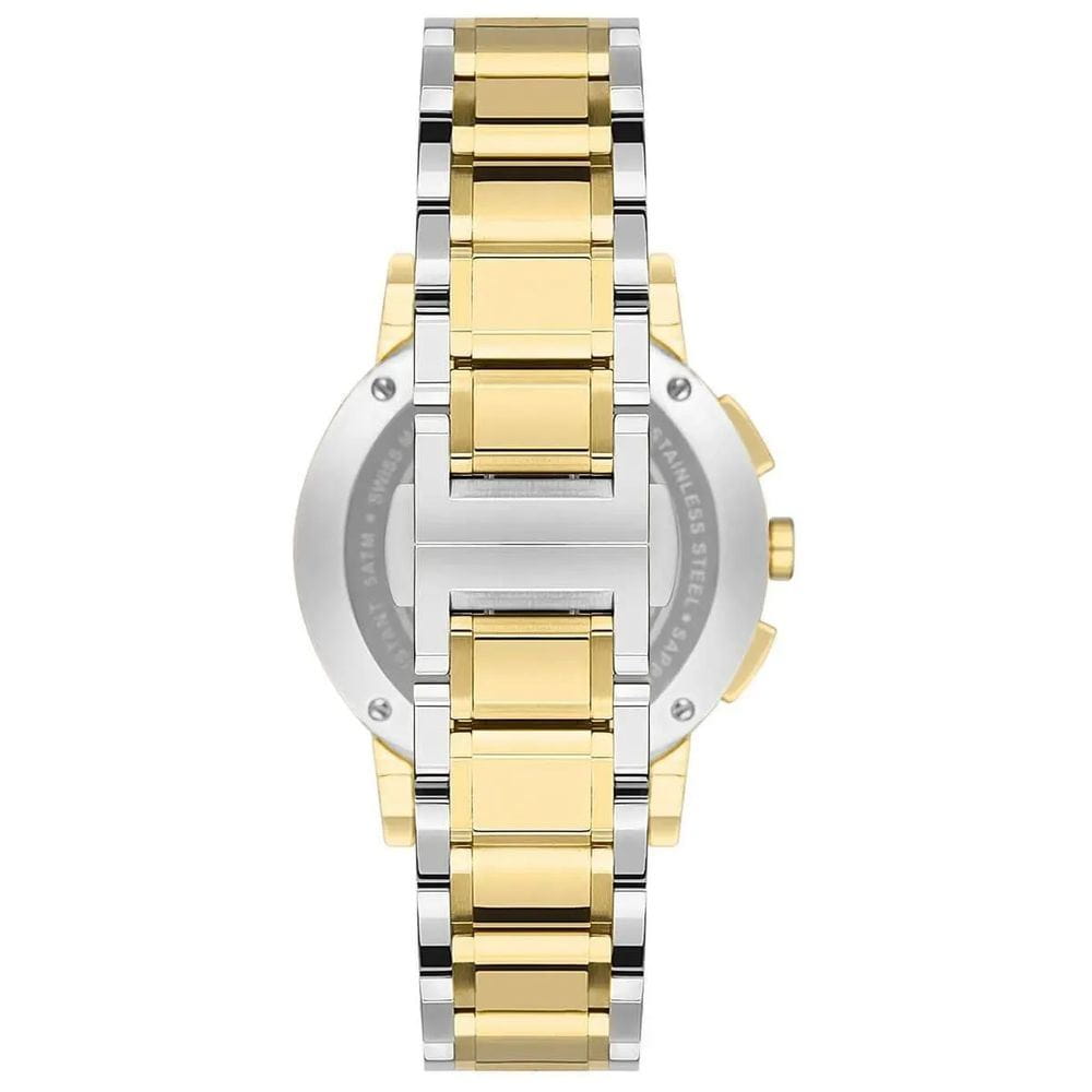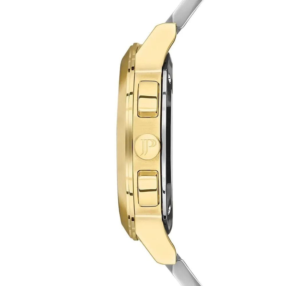 Швейцарские женские часы c хронографомХронографФункция позволяет измерять отрезки времени с особой точностью: часы, минуты, секунды. Верным признаком хронографа является наличие на циферблате 3 дополнительных окошек-счётчиков. Jacques Philippe Cosmos JPQLC3223X8N, кварцевый механизм с высокой точностью. Сапфировое стеклоСапфировое стеклоПрочный и надёжный материал из кристалла сапфира синтетического происхождения, характеризующийся особой твёрдостью и устойчивостью к царапинам и повреждениям. устойчивое к появлению царапин, обладающее высокой прозрачностью. Корпус часов изготовлен из нержавеющей стали с PVD-покрытиемPVDУльтратонкое покрытие наносится в технике вакуумного напыления, сочетает в себе нитрид титана особой прочности со слоем золота или оксида хрома. Несёт в себе декоративную или защитную функцию.. Класс водозащиты: 50 метров, позволит защитить корпус от случайных брызг или капель дождя. Стальной браслет с PVD-покрытиемPVDУльтратонкое покрытие наносится в технике вакуумного напыления, сочетает в себе нитрид титана особой прочности со слоем золота или оксида хрома. Несёт в себе декоративную или защитную функцию. на застёжке-бабочке с кнопкамиЗастёжка "бабочка"Такой вид застёжки дополняется предохранителями, помогающими избежать случайного раскрытия браслета. Обладают изящным исполнением. . Окошко даты находится в положении между 4 и 5 часов. Циферблат инкрустирован кристаллами.