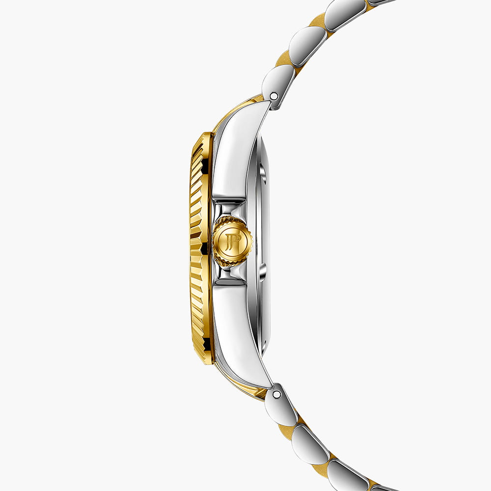 Jacques Philippe JPQLS5873X8 — женские часы в сдержанном классическом исполнении с акцентом на простоту и надёжность. Корпус диаметром 32 мм выполнен из нержавеющей стали — делает модель универсальной и комфортной в повседневной носке. Циферблат оформлен в светлом металлическом тоне с тонкими стрелками, лаконичными часовыми метками и аккуратным окошком даты в позиции «3 часа». Минималистичный стиль подчёркивает строгость и чистоту дизайна. Поверхность защищена устойчивым к царапинам сапфировым стекломСапфировое стеклоПрочный и надёжный материал из кристалла сапфира синтетического происхождения, характеризующийся особой твёрдостью и устойчивостью к царапинам и повреждениям., которое обеспечивает хорошую читаемость и долговечность. БезельБезельВнешний ободок, закрепляющий стекло. В спортивных часах так называется поворотное кольцо с делениями на циферблате, выполняет роль таймера – замеряет отрезки времени на шкале. Неподвижный безель – элемент декора. Однонаправленно вращающийся безель на дайверских часах позволяет фиксировать моменты погружения и выныривания на поверхность. с PVD-покрытиемPVDУльтратонкое покрытие наносится в технике вакуумного напыления, сочетает в себе нитрид титана особой прочности со слоем золота или оксида хрома. Несёт в себе декоративную или защитную функцию.. Механизм — точный швейцарский кварц, не требующий подзавода. Он обеспечивает стабильную и бесперебойную работу часов, сохраняя точность в любых условиях. Браслет из нержавеющей стали с PVD-покрытиемPVDУльтратонкое покрытие наносится в технике вакуумного напыления, сочетает в себе нитрид титана особой прочности со слоем золота или оксида хрома. Несёт в себе декоративную или защитную функцию. визуально продолжает корпус и фиксируется с помощью надёжной застёжки, обеспечивая комфортную посадку. Водозащита до 10 ATM позволяет использовать часы не только в повседневной жизни, но и при активности на воде. Jacques Philippe — это надёжная и универсальная модель для тех, кто ценит швейцарскую точность, простоту и уверенный стиль без лишних деталей.
