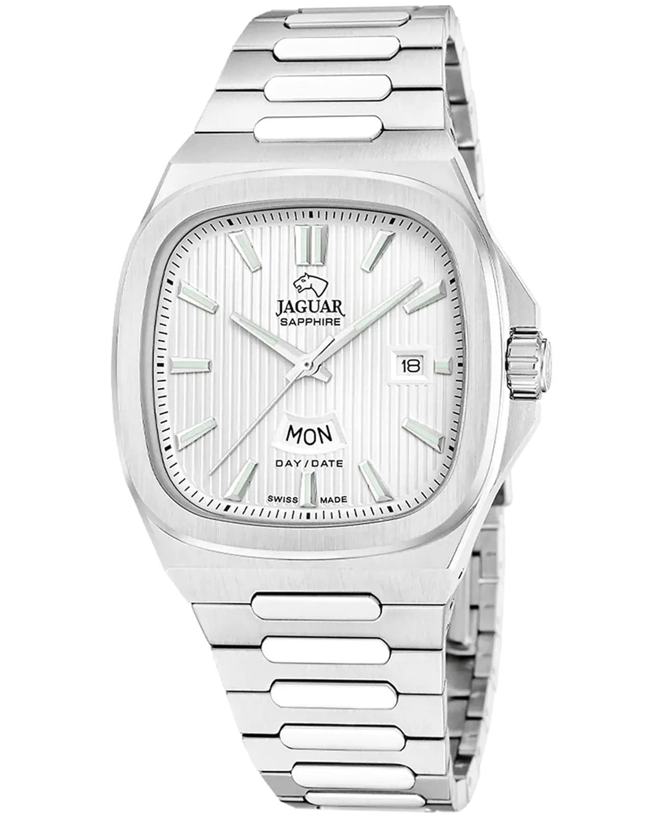 Мужские швейцарские часы Jaguar Rond Carre J1049/1 — это стильное сочетание элегантности и современного дизайна. Корпус из нержавеющей стали диаметром 41 мм идеально сбалансирован и элегантен. Сапфировое стеклоСапфировое стеклоПрочный и надёжный материал из кристалла сапфира синтетического происхождения, характеризующийся особой твёрдостью и устойчивостью к царапинам и повреждениям. с антибликовым покрытием защищает циферблат от царапин и обеспечивает отличную читаемость при любом освещении. Стальной браслет на застёжке-бабочке с кнопкамиЗастёжка "бабочка"Такой вид застёжки дополняется предохранителями, помогающими избежать случайного раскрытия браслета. Обладают изящным исполнением. идеально дополняют дизайн часов, обеспечивая комфортное ношение. Стрелки и метки на циферблате имеют люминесцентное покрытиеЛюминесцентное покрытиеПозволяет считывать показания времени в темноте. Производители наносят на стрелки, часовые индексы, безель или поверхность циферблата светонакопительный состав, дающий холодное свечение. позволяющее легко определять время даже в темноте. В часах есть функции отображение даты в позиции "3 часа" и дня недели на "6 часов" с помощью которой вы сможете измерять время с высокой точностью. Часы обладают водонепроницаемостью 50 метров, что позволит защитить корпус от случайных брызг или капель дождя.