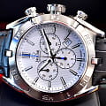 Мужские швейцарские часы-хронографХронографФункция позволяет измерять отрезки времени с особой точностью: часы, минуты, секунды. Верным признаком хронографа является наличие на циферблате 3 дополнительных окошек-счётчиков. Jaguar Executive Chrono J857/A. Кварцевый швейцарский калибр Ronda 5030d. Сапфировое стеклоСапфировое стеклоПрочный и надёжный материал из кристалла сапфира синтетического происхождения, характеризующийся особой твёрдостью и устойчивостью к царапинам и повреждениям. устойчивое к мелким механическим повреждениям. Корпус и браслет часов изготовлены из нержавеющей стали. Стрелки и метки с люминесцентным покрытиемЛюминесцентное покрытиеПозволяет считывать показания времени в темноте. Производители наносят на стрелки, часовые индексы, безель или поверхность циферблата светонакопительный состав, дающий холодное свечение.. Окошко даты находится в положении между «4» и «5 часами». Класс водозащиты: 100 метров, позволит плавать, нырять и заниматься другими водными видами спорта. Кожаный ремешок на стандартной застёжке.
