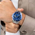 Мужские швейцарские часы Jaguar Executive Diver J860/C. Кварцевый швейцарский калибр Ronda 6003D. Сапфировое стеклоСапфировое стеклоПрочный и надёжный материал из кристалла сапфира синтетического происхождения, характеризующийся особой твёрдостью и устойчивостью к царапинам и повреждениям. устойчивое к мелким механическим повреждениям. Корпус и браслет часов изготовлены из нержавеющей стали. Стрелки и метки с люминесцентным покрытиемЛюминесцентное покрытиеПозволяет считывать показания времени в темноте. Производители наносят на стрелки, часовые индексы, безель или поверхность циферблата светонакопительный состав, дающий холодное свечение.. Окошко даты находится в положении 3 часа. Класс водозащиты: 200 метров, позволит плавать, нырять и заниматься другими водными видами спорта. Стальной браслет на раскладной застёжкеРаскладная застёжкаТакой тип застёжки используется только на браслетах из металла. Она никогда не раскрывается полностью, происходит разделение на 2 и более частей. Раскладывающая застёжка снизит вероятность потери часов к минимуму.. БезельБезельВнешний ободок, закрепляющий стекло. В спортивных часах так называется поворотное кольцо с делениями на циферблате, выполняет роль таймера – замеряет отрезки времени на шкале. Неподвижный безель – элемент декора. Однонаправленно вращающийся безель на дайверских часах позволяет фиксировать моменты погружения и выныривания на поверхность. с PVD-покрытиемPVDУльтратонкое покрытие наносится в технике вакуумного напыления, сочетает в себе нитрид титана особой прочности со слоем золота или оксида хрома. Несёт в себе декоративную или защитную функцию..
