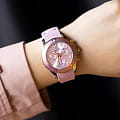 Женские швейцарские часы-хронографХронографФункция позволяет измерять отрезки времени с особой точностью: часы, минуты, секунды. Верным признаком хронографа является наличие на циферблате 3 дополнительных окошек-счётчиков. Jaguar Woman J890/2. Кварцевый швейцарский калибр Ronda 5030D. Сапфировое стеклоСапфировое стеклоПрочный и надёжный материал из кристалла сапфира синтетического происхождения, характеризующийся особой твёрдостью и устойчивостью к царапинам и повреждениям. устойчивое к мелким механическим повреждениям. Корпус часов изготовлен из нержавеющей стали. Стрелки и метки с люминесцентным покрытиемЛюминесцентное покрытиеПозволяет считывать показания времени в темноте. Производители наносят на стрелки, часовые индексы, безель или поверхность циферблата светонакопительный состав, дающий холодное свечение.. Окошко даты находится в положении 6 часов. Класс водозащиты: 200 метров, позволит плавать, нырять и заниматься другими водными видами спорта. Силиконовый ремешок на стандартной застёжке. БезельБезельВнешний ободок, закрепляющий стекло. В спортивных часах так называется поворотное кольцо с делениями на циферблате, выполняет роль таймера – замеряет отрезки времени на шкале. Неподвижный безель – элемент декора. Однонаправленно вращающийся безель на дайверских часах позволяет фиксировать моменты погружения и выныривания на поверхность. с PVD-покрытиемPVDУльтратонкое покрытие наносится в технике вакуумного напыления, сочетает в себе нитрид титана особой прочности со слоем золота или оксида хрома. Несёт в себе декоративную или защитную функцию..