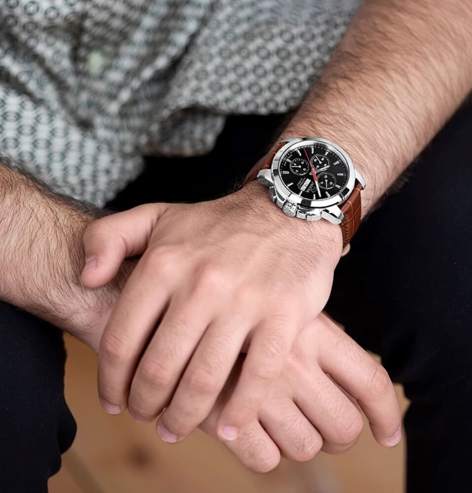 Jaguar Le Chronographe J975/4 — это мужские часы, сочетающие классический дизайн с современными функциями. Корпус диаметром 45 мм выполнен из нержавеющей стали, что обеспечивает прочность и элегантный внешний вид. Сапфировое стеклоСапфировое стеклоПрочный и надёжный материал из кристалла сапфира синтетического происхождения, характеризующийся особой твёрдостью и устойчивостью к царапинам и повреждениям. защищает циферблат от царапин и повреждений. Изысканный циферблат со стильными индексами и стрелками подчёркивает утончённый стиль. Часы с хронографом. Часы оснащены стильным кожаным ремешком и классической застежкой, идеальной системой крепления для кожаного ремешка, которая гарантирует, что часы будут надежно оставаться на месте в любое время. Водозащита до 10 ATM (100 метров) делает часы подходящими для плавания и занятий водными видами спорта. Jaguar J975/4 — идеальный выбор для мужчин, которые ценят швейцарское качество и современные технологии.
