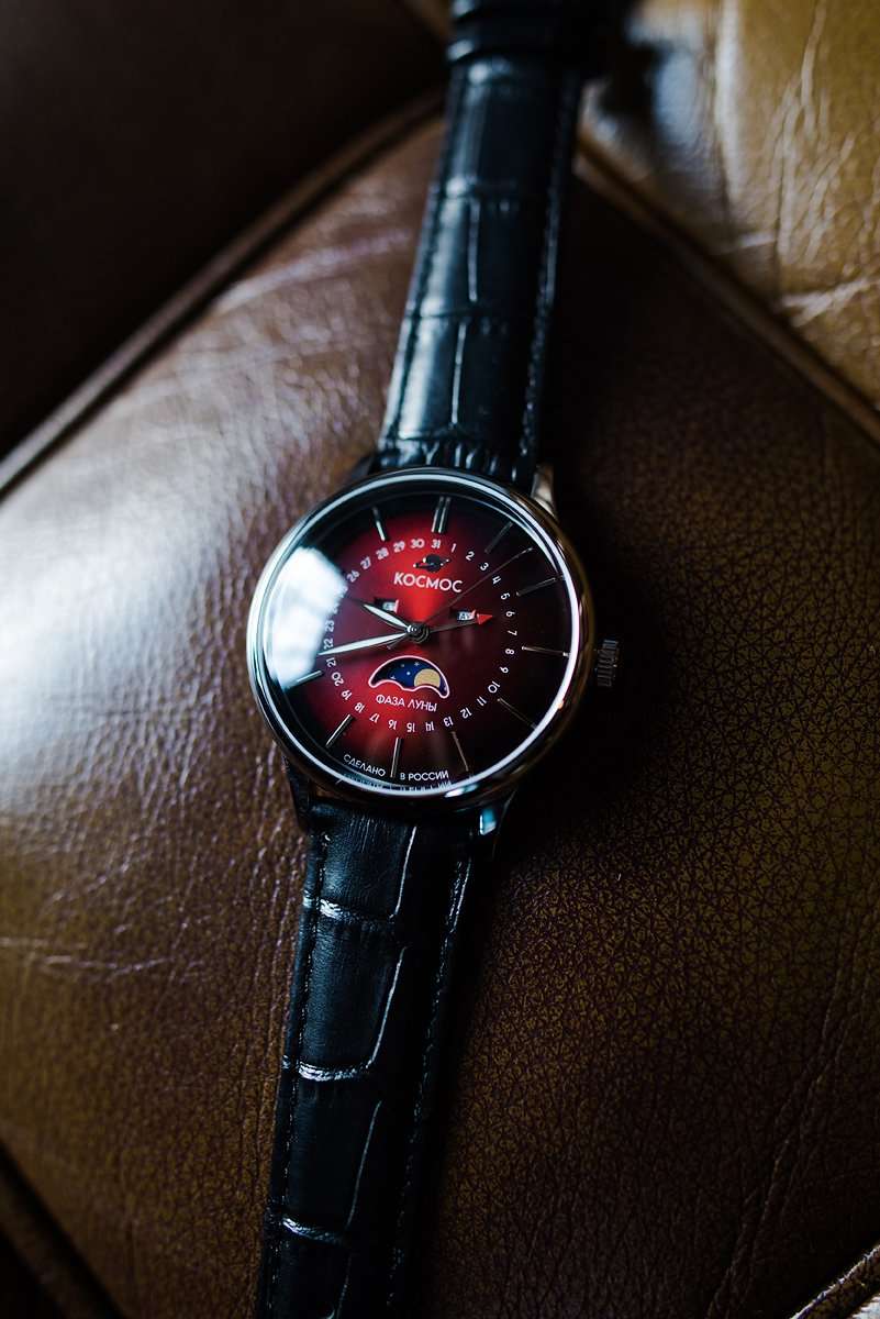 Российские кварцевые часы Космос K 067.11.35 из коллекции Сатурн оснащены механизмом калибра Miyota. Круглый корпус из стали диаметром 41 мм защищен минеральным стекломМинеральное стеклоМинеральное стекло представляет собой искусственно выращенный минерал кварца. Такое стекло отличается особой устойчивостью к повреждениям и царапинам. Уступает по некоторым качествам сапфировому стеклу. повышенной прочности. Циферблат дополнен функциями отображения даты центральной стрелкой, дня недели, месяца и фаз Луны. Стрелки с люминесцентным покрытиемЛюминесцентное покрытиеПозволяет считывать показания времени в темноте. Производители наносят на стрелки, часовые индексы, безель или поверхность циферблата светонакопительный состав, дающий холодное свечение. обеспечивают хорошую видимость в темное время суток. Часы имеют водонепроницаемость 50 метров, позволит защитить корпус от случайных брызг или капель дождя. Модель комплектуется кожаным ремешком на стандартной застежке. Практичный и стильный дизайн делает эти часы идеальным выбором для современного ритма жизни, сочетая в себе функциональность и элегантность.