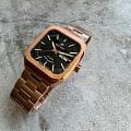 Мужские наручные часы Космос Марсоход K 213.40.31 — это уникальная лимитированная серия, посвященная аппарату, способному передвигаться по поверхности Красной планеты. Марсоход ассоциируется с брутальностью, мастерством и технической сложностью. Наша страна дважды запускала подобные аппараты еще в 70-х годах прошлого века. Дизайн часов серии Марсоход вдохновлен лучшими работами советских мастеров, сочетая современные технологии часового искусства с обаянием стиля ретро. Корпус в форме квадрата с закругленными углами выполнен из нержавеющей стали с PVDPVDУльтратонкое покрытие наносится в технике вакуумного напыления, сочетает в себе нитрид титана особой прочности со слоем золота или оксида хрома. Несёт в себе декоративную или защитную функцию. покрытием, украшенной зеркальной полировкой и сатинированием. Удобная заводная головка имеет форму гайки, что добавляет модели индустриальный шарм. Задняя крышка прозрачная, закрепленная на четырех винтах, и позволяет увидеть работу механизма TMI с подвижным ротором, на котором гравируется надпись «Сделано в России». Также здесь представлена гравировка с изображением космонавта, придающая часам особую значимость. Водостойкость достигает 10 атм (WR100), что позволяет использовать часы при плавании и других водных видах спорта. На задней крышке указан индивидуальный номер модели в формате от 01/50 до 50/50 (первый выпуск) или от 051/200 до 200/200 (второй выпуск). Объемный циферблат состоит из двух уровней. В центре движутся три стрелки, часовая и минутная из которых имеют люминесцентное покрытиеЛюминесцентное покрытиеПозволяет считывать показания времени в темноте. Производители наносят на стрелки, часовые индексы, безель или поверхность циферблата светонакопительный состав, дающий холодное свечение., позволяющее определять время даже в темноте. Индексы накладные, как и стальная рамка, выделяющая сдвоенное окошко даты и дня недели, где день недели отображается на двух языках — русском и английском. Циферблат защищен прочным сапфировым стеклом с антибликовым покрытиемСапфировое стеклоПрочный и надёжный материал из кристалла сапфира синтетического происхождения, характеризующийся особой твёрдостью и устойчивостью к царапинам и повреждениям., обеспечивающим отличную читаемость показаний в любых условиях. Браслет изготовлен из литых стальных звеньев нержавеющей стали и оснащен удобной застёжкой «бабочка» с кнопкамиЗастёжка "бабочка"Такой вид застёжки дополняется предохранителями, помогающими избежать случайного раскрытия браслета. Обладают изящным исполнением. , которая сводит к минимуму вероятность потери. Заводная головка, застежка и браслет украшены фирменным логотипом бренда. Коллекция Марсоход — идеальный выбор для ценителей истории космических достижений и современных технологий.