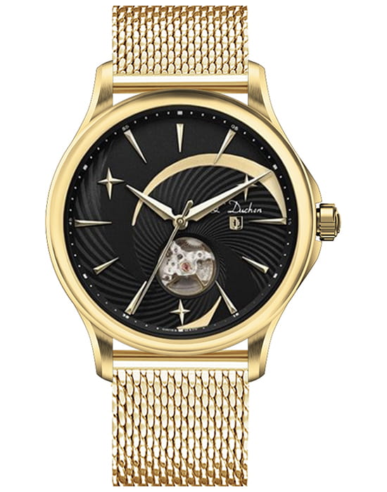 Мужские механические наручные часы с автоподзаводом LDuchen Spacematic D 154.21.31 M. Корпус изготовлен из стали с PVD-покрытиемPVDУльтратонкое покрытие наносится в технике вакуумного напыления, сочетает в себе нитрид титана особой прочности со слоем золота или оксида хрома. Несёт в себе декоративную или защитную функцию. . Сапфировое стеклоСапфировое стеклоПрочный и надёжный материал из кристалла сапфира синтетического происхождения, характеризующийся особой твёрдостью и устойчивостью к царапинам и повреждениям., выпуклое с обеих сторон, внутреннее антибликовое покрытие. Водозащита: 50 метров, позволит защитить корпус от случайных брызг или капель дождя. Метки в виде штрихов. Рифленая заводная головка. Удобный и надежный стальной браслет миланского плетения с регулируемой застежкой.