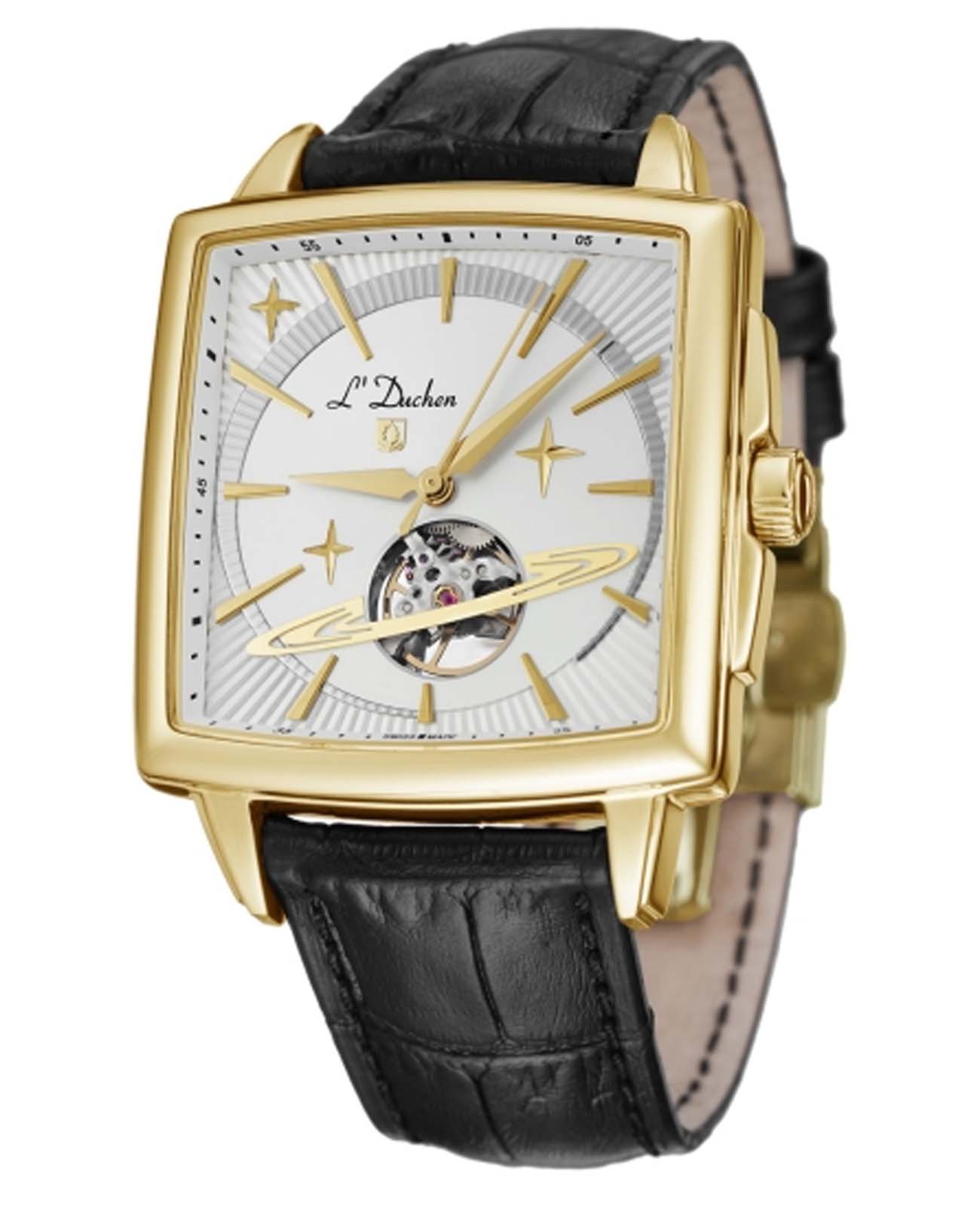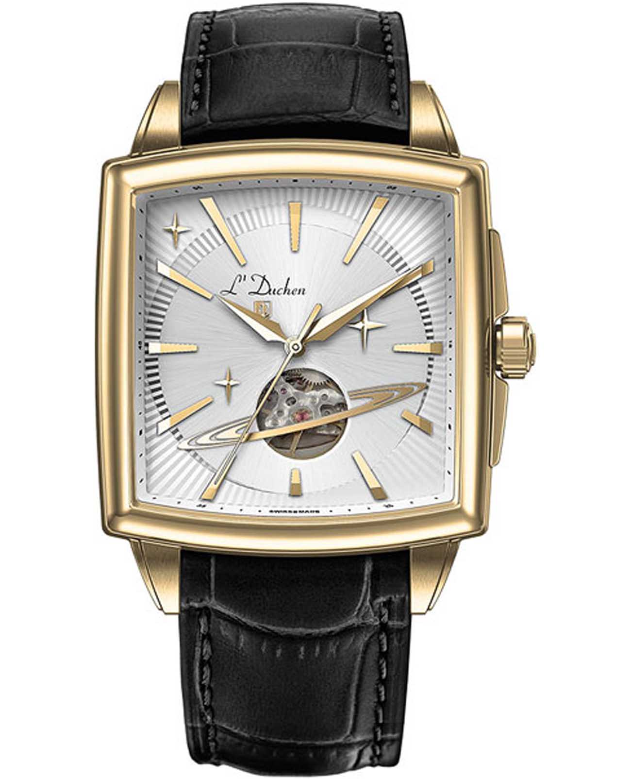 Мужские швейцарские механические с автоподзаводом L'Duchen Saturn D 444.21.33. Сапфировое стеклоСапфировое стеклоПрочный и надёжный материал из кристалла сапфира синтетического происхождения, характеризующийся особой твёрдостью и устойчивостью к царапинам и повреждениям. устойчивое к появлению царапин, обладающее высокой прозрачностью. Корпус часов выполнен из нержавеющей стали с PVD-покрытиемPVDУльтратонкое покрытие наносится в технике вакуумного напыления, сочетает в себе нитрид титана особой прочности со слоем золота или оксида хрома. Несёт в себе декоративную или защитную функцию.. Класс водозащиты: 50 метров, позволит защитить корпус от случайных брызг или капель дождя. Кожаный ремешок на застёжке «бабочка» с кнопкамиЗастёжка "бабочка"Такой вид застёжки дополняется предохранителями, помогающими избежать случайного раскрытия браслета. Обладают изящным исполнением. .