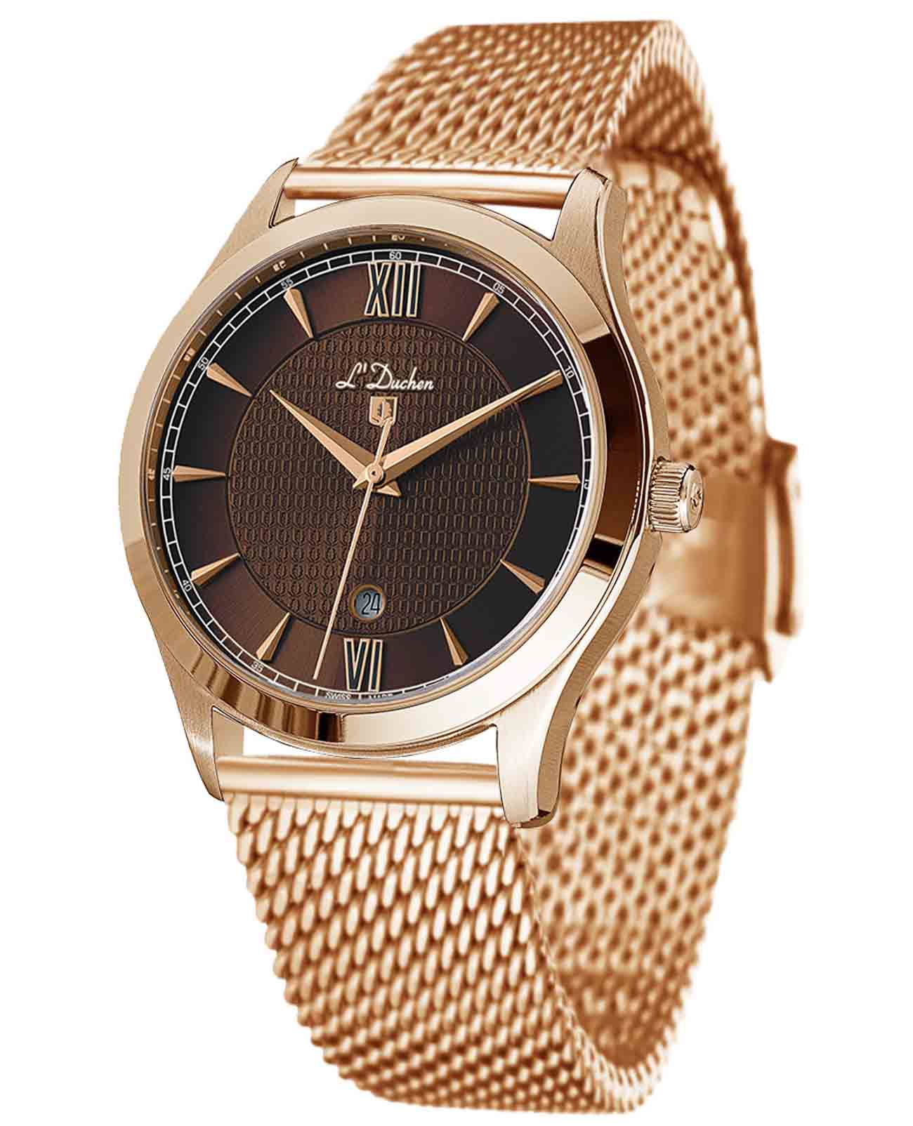 Мужские швейцарские часы L'Duchen Carcassonne D 761.42.48 M, кварцевый механизм с высокой точностью. Сапфировое стеклоСапфировое стеклоПрочный и надёжный материал из кристалла сапфира синтетического происхождения, характеризующийся особой твёрдостью и устойчивостью к царапинам и повреждениям. устойчивое к появлению царапин, обладающее высокой прозрачностью. Корпус часов выполнен из нержавеющей стали с PVD-покрытиемPVDУльтратонкое покрытие наносится в технике вакуумного напыления, сочетает в себе нитрид титана особой прочности со слоем золота или оксида хрома. Несёт в себе декоративную или защитную функцию.. Класс водозащиты: 50 метров, позволит защитить корпус от случайных брызг или капель дождя. Стальной браслет миланского плетения с PVD-покрытиемPVDУльтратонкое покрытие наносится в технике вакуумного напыления, сочетает в себе нитрид титана особой прочности со слоем золота или оксида хрома. Несёт в себе декоративную или защитную функцию. на раскладном замкеРаскладной замокДанный вариант застежки используется только на часах с металлическим браслетом. Отличительная особенность такого крепления в том, что длина браслета становится универсальной и вы можете самостоятельно отрегулировать нужный вам размер – застежка просто двигается по браслету часов..