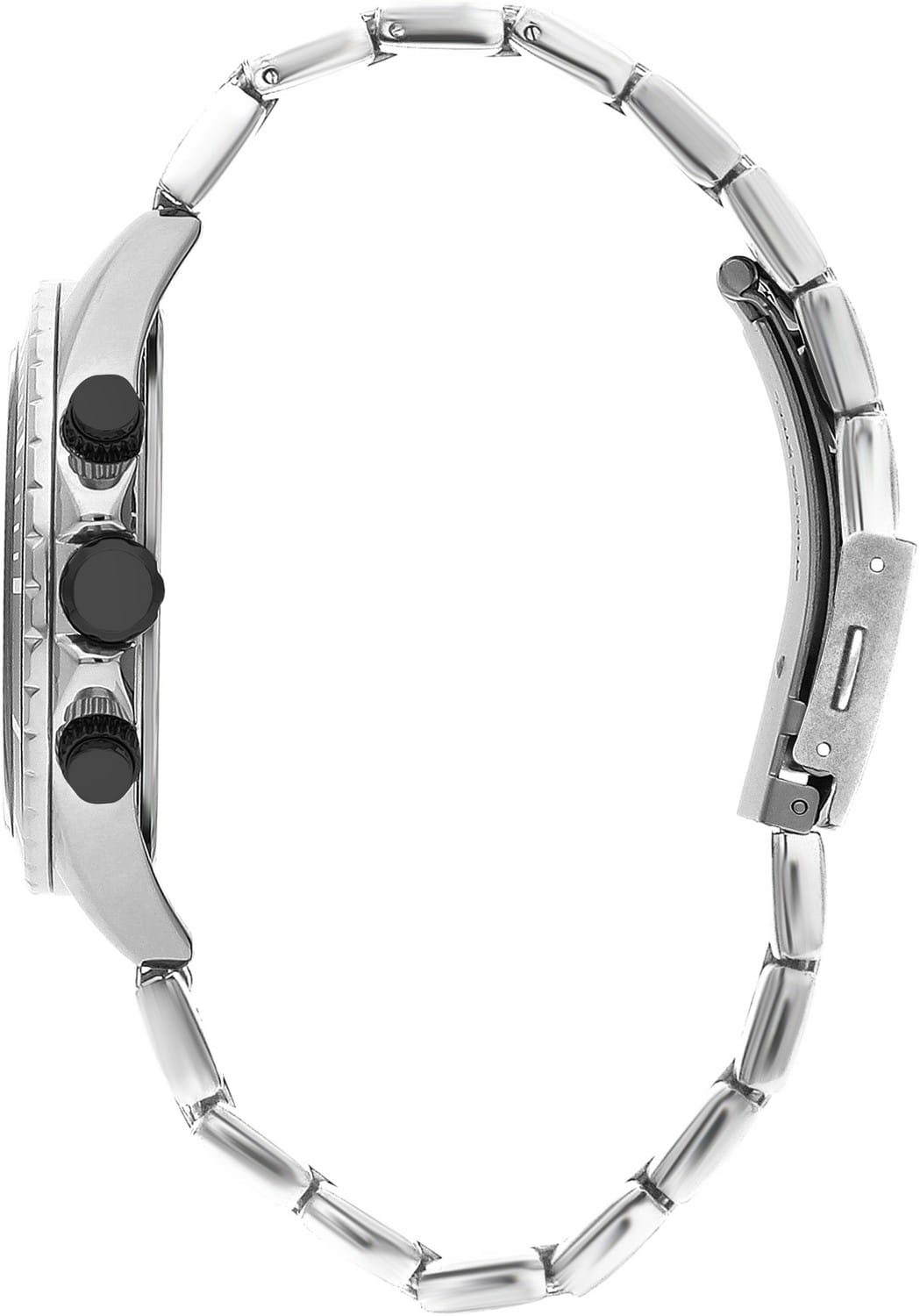 Мужские часы Lee Cooper LC07529.060 — это стильное сочетание элегантности и современного дизайна. Круглый корпус диаметром 44 мм выполнен из суперметалла серебристого цвета. БезельБезельВнешний ободок, закрепляющий стекло. В спортивных часах так называется поворотное кольцо с делениями на циферблате, выполняет роль таймера – замеряет отрезки времени на шкале. Неподвижный безель – элемент декора. Однонаправленно вращающийся безель на дайверских часах позволяет фиксировать моменты погружения и выныривания на поверхность. с IP-покрытиемIP-покрытиеМетод ионного напыления. Демонстрирует повышенную устойчивость к истиранию, окислению и химическим веществам. Под воздействием высокого давления и температуры около 1500°C молекулы металла надёжно соединяются с частицами корпуса часов. черного цвета придает модели особый вид. Циферблат защищен минеральным стекломМинеральное стеклоМинеральное стекло представляет собой искусственно выращенный минерал кварца. Такое стекло отличается особой устойчивостью к повреждениям и царапинам. Уступает по некоторым качествам сапфировому стеклу., обеспечивающим устойчивость к царапинам. Метки в виде штрихов. Часы оснащены надежным кварцевым механизмом, а металлический браслет на раскладной застёжкеРаскладная застёжкаТакой тип застёжки используется только на браслетах из металла. Она никогда не раскрывается полностью, происходит разделение на 2 и более частей. Раскладывающая застёжка снизит вероятность потери часов к минимуму. гарантирует комфортную посадку на запястье. Окошко даты находится в положении 3 часа. Стрелки и метки с люминесцентным покрытиемЛюминесцентное покрытиеПозволяет считывать показания времени в темноте. Производители наносят на стрелки, часовые индексы, безель или поверхность циферблата светонакопительный состав, дающий холодное свечение. позволяют легко считывать время даже в условиях недостаточного освещения. Мультифункциональная модель с индикацией даты, дня недели, с дополнительным 24-х часовым индикатором. Водозащита 50 метров позволит защитить корпус от случайных брызг или капель дождя. Lee Cooper — отличный выбор для тех, кто ценит утонченность и качество.