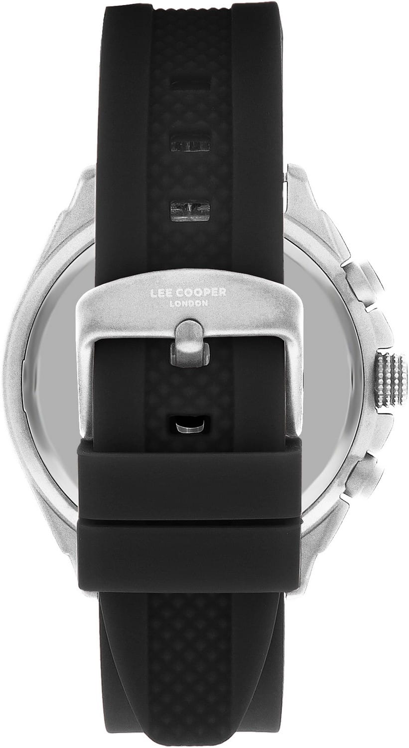 Мужские часы Lee Cooper LC07545.351 — это стильное сочетание элегантности и современного дизайна. Круглый корпус диаметром 45 мм выполнен из суперметалла серебристого цвета. БезельБезельВнешний ободок, закрепляющий стекло. В спортивных часах так называется поворотное кольцо с делениями на циферблате, выполняет роль таймера – замеряет отрезки времени на шкале. Неподвижный безель – элемент декора. Однонаправленно вращающийся безель на дайверских часах позволяет фиксировать моменты погружения и выныривания на поверхность. с IP-покрытиемIP-покрытиеМетод ионного напыления. Демонстрирует повышенную устойчивость к истиранию, окислению и химическим веществам. Под воздействием высокого давления и температуры около 1500°C молекулы металла надёжно соединяются с частицами корпуса часов. черного цвета, что придает модели особый вид. Циферблат защищен минеральным стекломМинеральное стеклоМинеральное стекло представляет собой искусственно выращенный минерал кварца. Такое стекло отличается особой устойчивостью к повреждениям и царапинам. Уступает по некоторым качествам сапфировому стеклу., обеспечивающим устойчивость к царапинам. Метки в виде штрихов. Часы оснащены надежным кварцевым механизмом, а каучуковый ремешок на стандартной застежке гарантирует комфортную посадку на запястье. Окошко даты находится в положении между 4 и 5 часов. Стрелки и метки с люминесцентным покрытиемЛюминесцентное покрытиеПозволяет считывать показания времени в темноте. Производители наносят на стрелки, часовые индексы, безель или поверхность циферблата светонакопительный состав, дающий холодное свечение. позволяют легко считывать время даже в условиях недостаточного освещения. Водозащита 50 метров позволит защитить корпус от случайных брызг или капель дождя. Lee Cooper — отличный выбор для тех, кто ценит утонченность и качество.