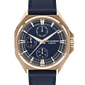 Мужские часы LC07568.499 – это стильное и современное решение для тех, кто ценит качество и элегантность. Эти часы идеально подойдут как для повседневной носки, так и для особых случаев. Корпус диаметром 44 мм выполнен из суперметалла, и золотистый безельБезельВнешний ободок, закрепляющий стекло. В спортивных часах так называется поворотное кольцо с делениями на циферблате, выполняет роль таймера – замеряет отрезки времени на шкале. Неподвижный безель – элемент декора. Однонаправленно вращающийся безель на дайверских часах позволяет фиксировать моменты погружения и выныривания на поверхность. из нержавеющей стали с IP-покрытиемIP-покрытиеМетод ионного напыления. Демонстрирует повышенную устойчивость к истиранию, окислению и химическим веществам. Под воздействием высокого давления и температуры около 1500°C молекулы металла надёжно соединяются с частицами корпуса часов. обеспечивает долговечность и надежность. Минеральное стеклоМинеральное стеклоМинеральное стекло представляет собой искусственно выращенный минерал кварца. Такое стекло отличается особой устойчивостью к повреждениям и царапинам. Уступает по некоторым качествам сапфировому стеклу. надёжно защищает циферблат от царапин и повреждений, сохраняя его безупречный вид. Часы оснащены высокоточным кварцевым механизмом, который гарантирует стабильный ход и надёжность в эксплуатации. Уровень водонепроницаемости 50 метров позволяет не беспокоиться о случайных брызгах воды в повседневной жизни, но не рекомендуется использовать часы при плавании. Удобный и прочный ремешок синего цвета, выполненный из качественных материалов, дополнен классическим замком, что обеспечивает комфортную посадку и надёжность при носке. Часы LC07568.499 обладают современным и лаконичным дизайном, который прекрасно гармонирует с любым стилем одежды. Эта модель – отличный выбор для тех, кто ищет сочетание стиля, качества и функциональности. Часы станут не только полезным аксессуаром, но и выразительным элементом вашего имиджа.