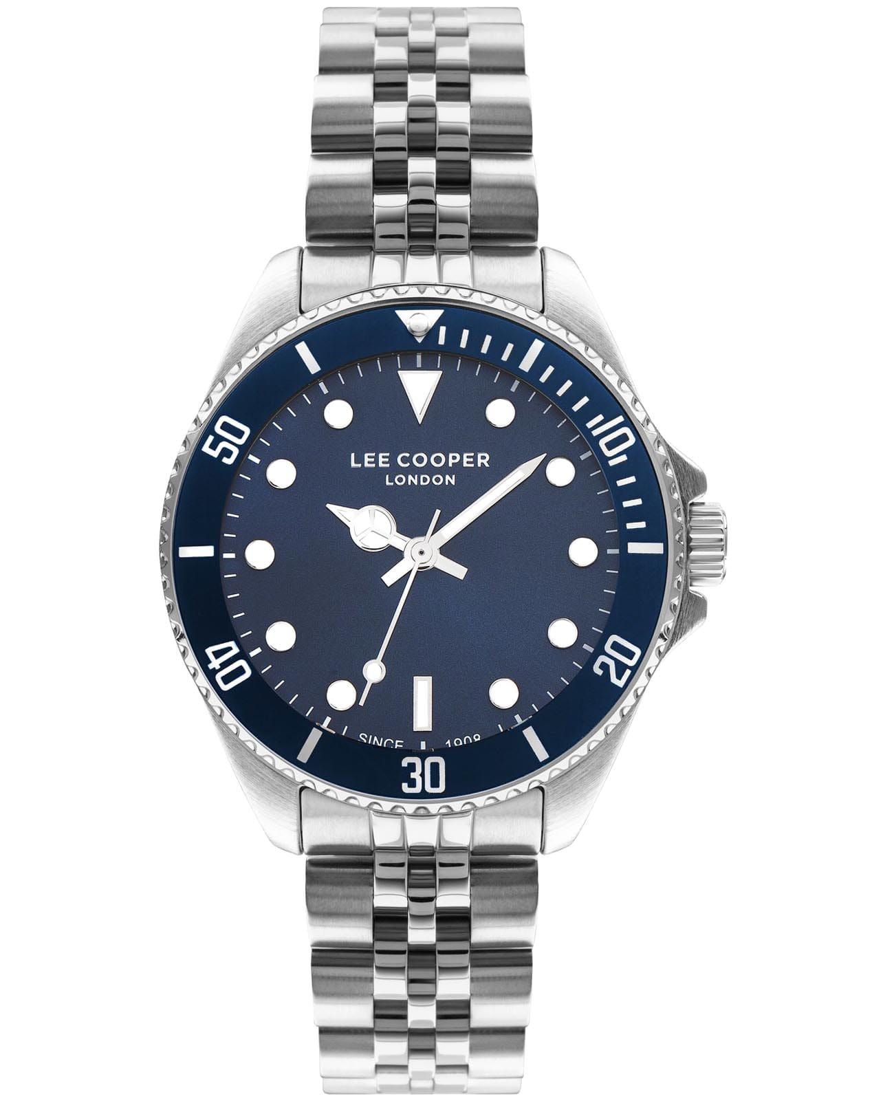 Женские часы Lee Cooper LC07593.390 — это стильное сочетание элегантности и современного дизайна. Круглый корпус диаметром 36 мм выполнен из суперметалла серебристого цвета. Циферблат защищен минеральным стекломМинеральное стеклоМинеральное стекло представляет собой искусственно выращенный минерал кварца. Такое стекло отличается особой устойчивостью к повреждениям и царапинам. Уступает по некоторым качествам сапфировому стеклу., обеспечивающий устойчивость к царапинам. Поворотный безельБезельВнешний ободок, закрепляющий стекло. В спортивных часах так называется поворотное кольцо с делениями на циферблате, выполняет роль таймера – замеряет отрезки времени на шкале. Неподвижный безель – элемент декора. Однонаправленно вращающийся безель на дайверских часах позволяет фиксировать моменты погружения и выныривания на поверхность. с IP-покрытиемIP-покрытиеМетод ионного напыления. Демонстрирует повышенную устойчивость к истиранию, окислению и химическим веществам. Под воздействием высокого давления и температуры около 1500°C молекулы металла надёжно соединяются с частицами корпуса часов. синего цвета. Центральные часовая, минутная и секундная стрелки. Часы оснащены надежным кварцевым механизмом, источник питания - батарейка. Металлический браслет на раскладной застёжкеРаскладная застёжкаТакой тип застёжки используется только на браслетах из металла. Она никогда не раскрывается полностью, происходит разделение на 2 и более частей. Раскладывающая застёжка снизит вероятность потери часов к минимуму. гарантирует комфортную посадку на запястье. Водозащита 30 метров защищает модель от случайных брызг и дождя. Стрелки с люминесцентным покрытиемЛюминесцентное покрытиеПозволяет считывать показания времени в темноте. Производители наносят на стрелки, часовые индексы, безель или поверхность циферблата светонакопительный состав, дающий холодное свечение. позволяющие легко определять время даже в темноте. Lee Cooper  — отличный выбор для тех, кто ценит утонченность и качество.
