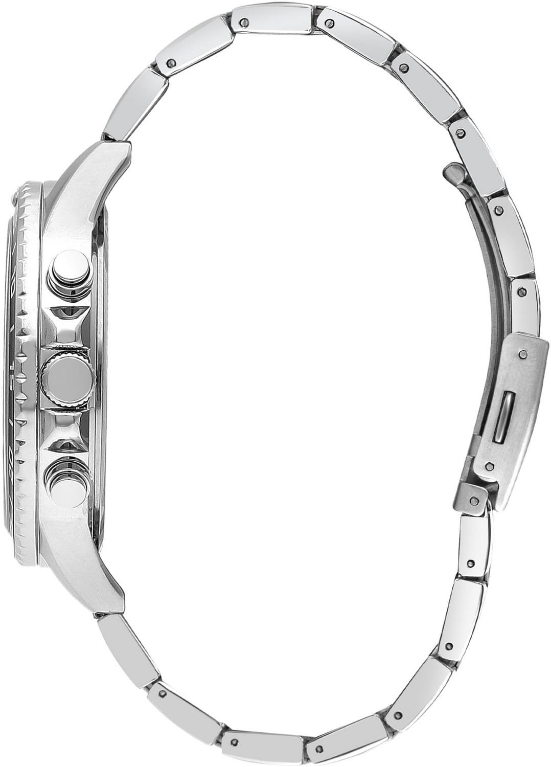 Мужские наручные часы Lee Cooper LC07636.370 оснащены кварцевым механизмом, обеспечивающий высокую точность хода и надежность. Корпус часов выполнен из суперметалла серебристого цвета, что делает их устойчивыми к внешним воздействиям и придает благородный вид. Элегантный безельБезельВнешний ободок, закрепляющий стекло. В спортивных часах так называется поворотное кольцо с делениями на циферблате, выполняет роль таймера – замеряет отрезки времени на шкале. Неподвижный безель – элемент декора. Однонаправленно вращающийся безель на дайверских часах позволяет фиксировать моменты погружения и выныривания на поверхность. с IP-покрытиемIP-покрытиеМетод ионного напыления. Демонстрирует повышенную устойчивость к истиранию, окислению и химическим веществам. Под воздействием высокого давления и температуры около 1500°C молекулы металла надёжно соединяются с частицами корпуса часов.. Циферблат черного цвета украшен классическими стрелками с люминесцентным покрытиемЛюминесцентное покрытиеПозволяет считывать показания времени в темноте. Производители наносят на стрелки, часовые индексы, безель или поверхность циферблата светонакопительный состав, дающий холодное свечение., гармонично дополняющим общий дизайн модели. Для защиты циферблата используется минеральное стеклоМинеральное стеклоМинеральное стекло представляет собой искусственно выращенный минерал кварца. Такое стекло отличается особой устойчивостью к повреждениям и царапинам. Уступает по некоторым качествам сапфировому стеклу., устойчивое к царапинам и механическим повреждениям. Корпус имеет круглую форму диаметром 45 мм, что делает часы заметными и подходящими. Браслет из стали оснащен раскладной застёжкойРаскладная застёжкаТакой тип застёжки используется только на браслетах из металла. Она никогда не раскрывается полностью, происходит разделение на 2 и более частей. Раскладывающая застёжка снизит вероятность потери часов к минимуму., обеспечивающим комфортное и безопасное ношение. Вынесенный циферблат с 24-х часовым указателем времени, индикацией даты и дня недели. Часы обладают водонепроницаемостью до 50 метров (5 АТМ), что позволяет использовать их в повседневной жизни, включая контакт с водой при мытье рук или дожде. Эти часы станут идеальным выбором для мужчин, ценящих стиль, качество и функциональность.