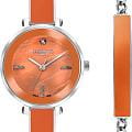 Женские часы Lee Cooper LC07813.380 выполнены в классическом стиле и сочетают строгий дизайн с надёжным механизмом. Модель оснащена кварцевым механизмом, обеспечивающим точность хода и минимальное обслуживание. Корпус круглой формы имеет размер 32 мм, изготовлен из суперметалла, гарантирует комфорт при ношении. Циферблат оранжевого цвета дополнен индексами для чёткого отсчёта времени. Защиту циферблата обеспечивает минеральное стеклоМинеральное стеклоМинеральное стекло представляет собой искусственно выращенный минерал кварца. Такое стекло отличается особой устойчивостью к повреждениям и царапинам. Уступает по некоторым качествам сапфировому стеклу., устойчивое к мелким механическим повреждениям. Изысканный стальной браслет с керамическими вставками на раскладной застёжкеРаскладная застёжкаТакой тип застёжки используется только на браслетах из металла. Она никогда не раскрывается полностью, происходит разделение на 2 и более частей. Раскладывающая застёжка снизит вероятность потери часов к минимуму. гарантирует комфортную посадку на запястье. Водозащита 3 АТМ позволяет использовать часы в повседневных условиях без риска повреждения от случайных брызг воды. В комплекте к часам идет дополнительный браслет в цвет часов. Это сочетание классического дизайна, прочности материалов и качества исполнения для уверенных в себе женщин.