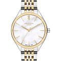 Женские часы Lee Cooper LC07821.220 выполнены в классическом стиле и сочетают строгий дизайн с надёжным механизмом. Модель оснащена кварцевым механизмом, обеспечивающим точность хода и минимальное обслуживание. Корпус круглой формы имеет размер 36 мм, изготовлен из суперметалла с изысканным неподвижным безелемБезельВнешний ободок, закрепляющий стекло. В спортивных часах так называется поворотное кольцо с делениями на циферблате, выполняет роль таймера – замеряет отрезки времени на шкале. Неподвижный безель – элемент декора. Однонаправленно вращающийся безель на дайверских часах позволяет фиксировать моменты погружения и выныривания на поверхность. с IP-покрытиемIP-покрытиеМетод ионного напыления. Демонстрирует повышенную устойчивость к истиранию, окислению и химическим веществам. Под воздействием высокого давления и температуры около 1500°C молекулы металла надёжно соединяются с частицами корпуса часов., гарантирует комфорт при ношении. Перламутровый циферблат дополнен штрихами для чёткого отсчёта времени. Защиту циферблата обеспечивает минеральное стеклоМинеральное стеклоМинеральное стекло представляет собой искусственно выращенный минерал кварца. Такое стекло отличается особой устойчивостью к повреждениям и царапинам. Уступает по некоторым качествам сапфировому стеклу., устойчивое к мелким механическим повреждениям. Стальной браслет с частичным IP-покрытиемIP-покрытиеМетод ионного напыления. Демонстрирует повышенную устойчивость к истиранию, окислению и химическим веществам. Под воздействием высокого давления и температуры около 1500°C молекулы металла надёжно соединяются с частицами корпуса часов. на раскладной застёжкеРаскладная застёжкаТакой тип застёжки используется только на браслетах из металла. Она никогда не раскрывается полностью, происходит разделение на 2 и более частей. Раскладывающая застёжка снизит вероятность потери часов к минимуму. гарантирует удобную посадку и надёжную фиксацию на запястье. Водозащита 30WR позволяет использовать часы в повседневных условиях без риска повреждения от случайных брызг воды. Это сочетание классического дизайна, прочности материалов и качества исполнения для уверенных в себе женщин.