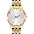 Женские часы Lee Cooper LC07833.130 — это стильное сочетание элегантности и современного дизайна. Изысканный круглый корпус диаметром 34 мм выполнен из суперметалла с IP-покрытиемIP-покрытиеМетод ионного напыления. Демонстрирует повышенную устойчивость к истиранию, окислению и химическим веществам. Под воздействием высокого давления и температуры около 1500°C молекулы металла надёжно соединяются с частицами корпуса часов. золотого цвета, что придает модели особый блеск. Серебристый циферблат защищен минеральным стекломМинеральное стеклоМинеральное стекло представляет собой искусственно выращенный минерал кварца. Такое стекло отличается особой устойчивостью к повреждениям и царапинам. Уступает по некоторым качествам сапфировому стеклу., обеспечивающим устойчивость к царапинам. Метки в виде лаконичных штрихов. Часы оснащены надежным кварцевым механизмом, а изящный стальной браслет с IP-покрытиемIP-покрытиеМетод ионного напыления. Демонстрирует повышенную устойчивость к истиранию, окислению и химическим веществам. Под воздействием высокого давления и температуры около 1500°C молекулы металла надёжно соединяются с частицами корпуса часов. на раскладной застёжкеРаскладная застёжкаТакой тип застёжки используется только на браслетах из металла. Она никогда не раскрывается полностью, происходит разделение на 2 и более частей. Раскладывающая застёжка снизит вероятность потери часов к минимуму. гарантирует комфортную посадку на запястье. Водозащита 30 метров защищает модель от случайных брызг и дождя. Lee Cooper — отличный выбор для тех, кто ценит утонченность и качество.