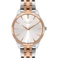 Женские часы Lee Cooper LC07833.530 — это стильное сочетание элегантности и современного дизайна. Изысканный круглый корпус диаметром 34 мм выполнен из суперметалла с неподвижным безелемБезельВнешний ободок, закрепляющий стекло. В спортивных часах так называется поворотное кольцо с делениями на циферблате, выполняет роль таймера – замеряет отрезки времени на шкале. Неподвижный безель – элемент декора. Однонаправленно вращающийся безель на дайверских часах позволяет фиксировать моменты погружения и выныривания на поверхность. с IP-покрытиемIP-покрытиеМетод ионного напыления. Демонстрирует повышенную устойчивость к истиранию, окислению и химическим веществам. Под воздействием высокого давления и температуры около 1500°C молекулы металла надёжно соединяются с частицами корпуса часов. золотого цвета, что придает модели особый блеск. Серебристый циферблат защищен минеральным стекломМинеральное стеклоМинеральное стекло представляет собой искусственно выращенный минерал кварца. Такое стекло отличается особой устойчивостью к повреждениям и царапинам. Уступает по некоторым качествам сапфировому стеклу., обеспечивающим устойчивость к царапинам. Метки в виде лаконичных штрихов. Часы оснащены надежным кварцевым механизмом, а изящный стальной браслет с частичным IP-покрытиемIP-покрытиеМетод ионного напыления. Демонстрирует повышенную устойчивость к истиранию, окислению и химическим веществам. Под воздействием высокого давления и температуры около 1500°C молекулы металла надёжно соединяются с частицами корпуса часов. на раскладной застёжкеРаскладная застёжкаТакой тип застёжки используется только на браслетах из металла. Она никогда не раскрывается полностью, происходит разделение на 2 и более частей. Раскладывающая застёжка снизит вероятность потери часов к минимуму. гарантирует комфортную посадку на запястье. Водозащита 30 метров защищает модель от случайных брызг и дождя. Lee Cooper — отличный выбор для тех, кто ценит утонченность и качество.