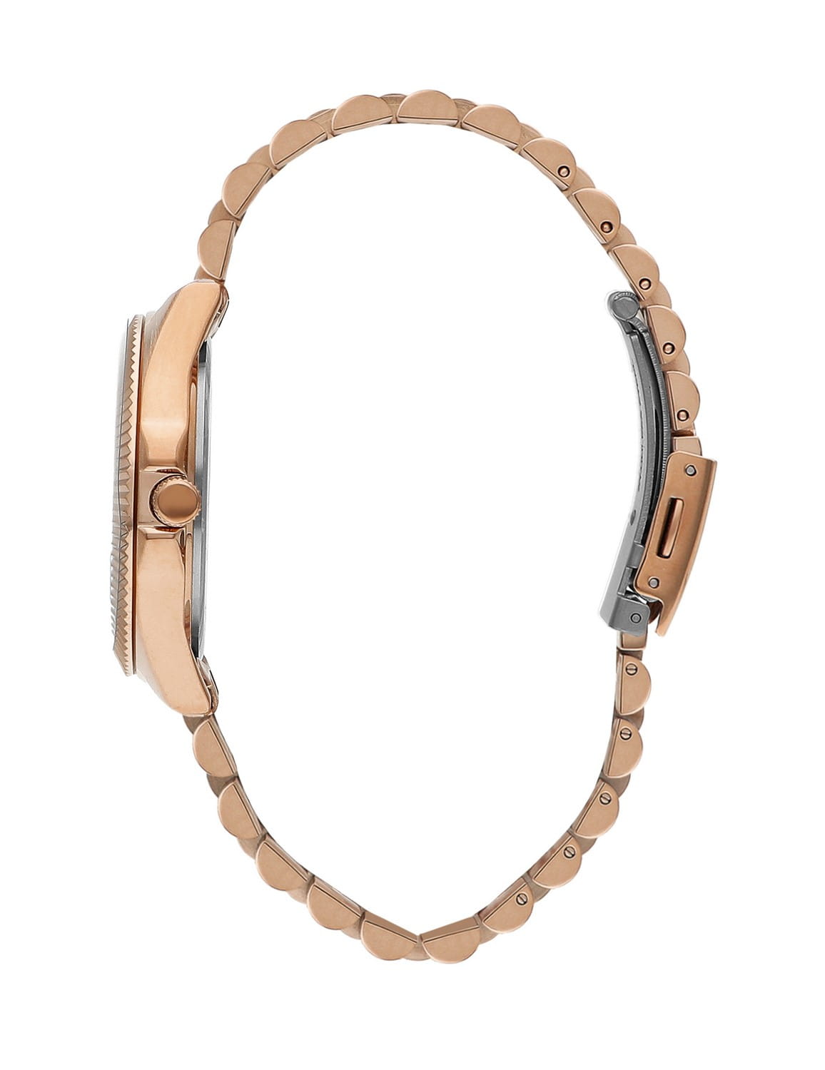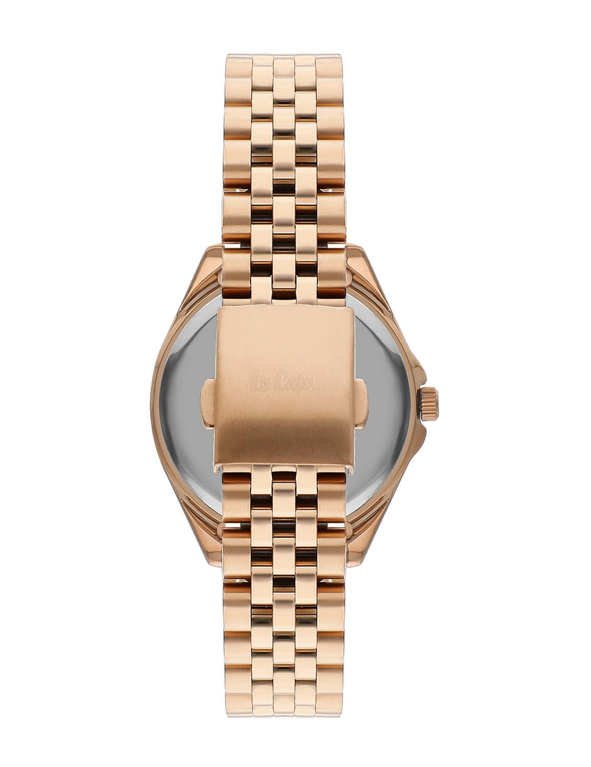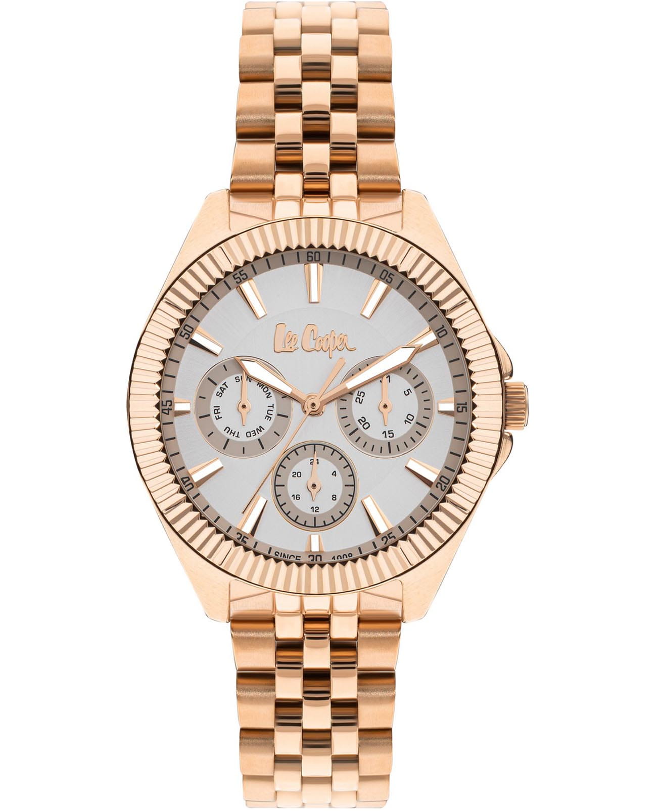 Женские часы Lee Cooper LC07837.430 — это стильное сочетание элегантности и современного дизайна. Корпус диаметром 36 мм выполнен из суперметалла с IP-покрытиемIP-покрытиеМетод ионного напыления. Демонстрирует повышенную устойчивость к истиранию, окислению и химическим веществам. Под воздействием высокого давления и температуры около 1500°C молекулы металла надёжно соединяются с частицами корпуса часов. золотого цвета, придающий модели особый блеск. Изысканный циферблат защищен минеральным стекломМинеральное стеклоМинеральное стекло представляет собой искусственно выращенный минерал кварца. Такое стекло отличается особой устойчивостью к повреждениям и царапинам. Уступает по некоторым качествам сапфировому стеклу., обеспечивающим устойчивость к царапинам. Метки в виде штрихов. Вынесенный циферблат с 24-х часовым указателем времени, индикацией даты и дня недели. Стрелки и метки с люминесцентным покрытиемЛюминесцентное покрытиеПозволяет считывать показания времени в темноте. Производители наносят на стрелки, часовые индексы, безель или поверхность циферблата светонакопительный состав, дающий холодное свечение. позволяют легко считывать время даже в условиях недостаточного освещения. Часы оснащены надежным кварцевым механизмом, а стальной браслет с IP-покрытиемIP-покрытиеМетод ионного напыления. Демонстрирует повышенную устойчивость к истиранию, окислению и химическим веществам. Под воздействием высокого давления и температуры около 1500°C молекулы металла надёжно соединяются с частицами корпуса часов. на раскладной застёжкеРаскладная застёжкаТакой тип застёжки используется только на браслетах из металла. Она никогда не раскрывается полностью, происходит разделение на 2 и более частей. Раскладывающая застёжка снизит вероятность потери часов к минимуму. гарантирует комфортную посадку на запястье. Водозащита 50 метров защищает модель от случайных брызг и дождя. Lee Cooper  — отличный выбор для тех, кто ценит утонченность и качество.