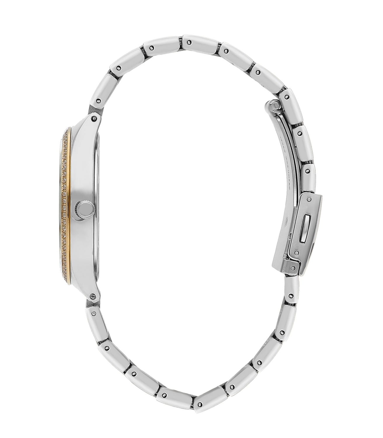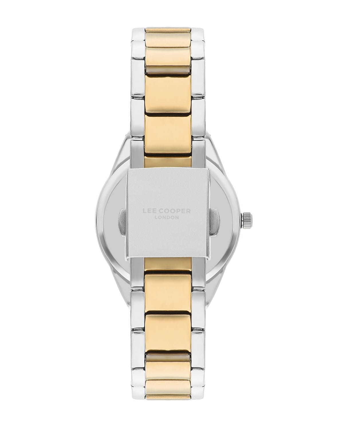 Женские часы Lee Cooper LC07863.230 — это стильное сочетание элегантности и современного дизайна. Круглый корпус диаметром 34 мм выполнен из суперметалла, а неподвижный безельБезельВнешний ободок, закрепляющий стекло. В спортивных часах так называется поворотное кольцо с делениями на циферблате, выполняет роль таймера – замеряет отрезки времени на шкале. Неподвижный безель – элемент декора. Однонаправленно вращающийся безель на дайверских часах позволяет фиксировать моменты погружения и выныривания на поверхность. с IP-покрытиемIP-покрытиеМетод ионного напыления. Демонстрирует повышенную устойчивость к истиранию, окислению и химическим веществам. Под воздействием высокого давления и температуры около 1500°C молекулы металла надёжно соединяются с частицами корпуса часов. украшен цирконами, придающими модели особый блеск. Серебристый циферблат защищен минеральным стекломМинеральное стеклоМинеральное стекло представляет собой искусственно выращенный минерал кварца. Такое стекло отличается особой устойчивостью к повреждениям и царапинам. Уступает по некоторым качествам сапфировому стеклу., обеспечивающим устойчивость к царапинам. Метки в виде штрихов. Часы оснащены надежным кварцевым механизмом, а металлический браслет с IP-покрытиемIP-покрытиеМетод ионного напыления. Демонстрирует повышенную устойчивость к истиранию, окислению и химическим веществам. Под воздействием высокого давления и температуры около 1500°C молекулы металла надёжно соединяются с частицами корпуса часов. на раскладной застёжкеРаскладная застёжкаТакой тип застёжки используется только на браслетах из металла. Она никогда не раскрывается полностью, происходит разделение на 2 и более частей. Раскладывающая застёжка снизит вероятность потери часов к минимуму. гарантирует комфортную посадку на запястье. Мультифункциональная модель с индикацией даты, дня недели, с дополнительным 24-х часовым индикатором. Водозащита 30 метров защищает модель от случайных брызг и дождя. Lee Cooper — отличный выбор для тех, кто ценит утонченность и качество.
