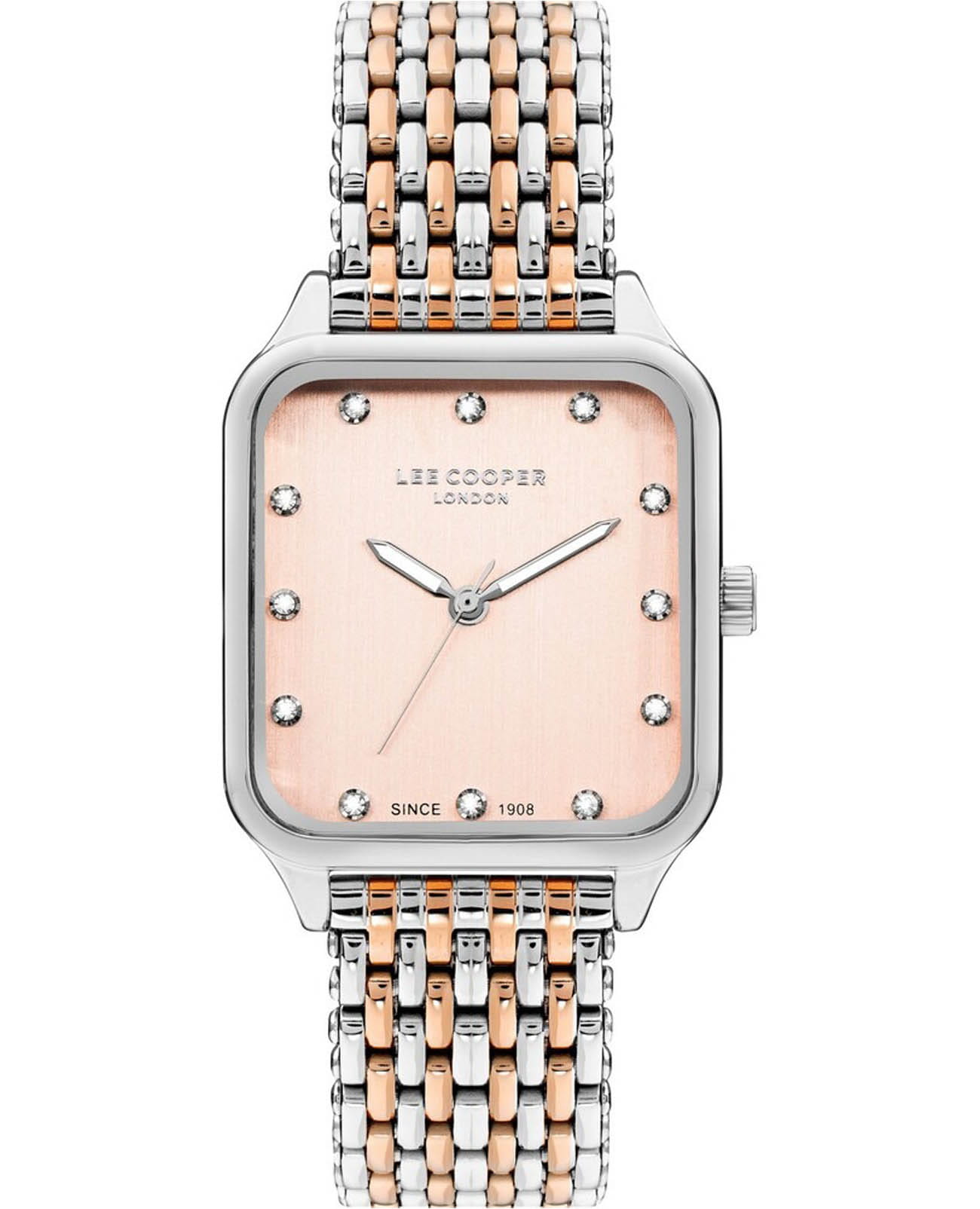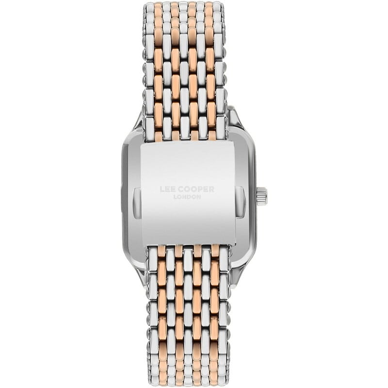 Женские часы Lee Cooper LC07957.510 с элегантным корпусом 29х38 мм выполнены из суперметалла, что обеспечивает прочность и износостойкость. Розовый циферблат придаёт модели изысканный вид, а минеральное стеклоМинеральное стеклоМинеральное стекло представляет собой искусственно выращенный минерал кварца. Такое стекло отличается особой устойчивостью к повреждениям и царапинам. Уступает по некоторым качествам сапфировому стеклу. защищает от царапин и повреждений. В основе часов точный кварцевый механизм, гарантирующий стабильность хода. Водозащита 30 м защищает от случайных брызг. Стрелки покрыты люминесцентным покрытиемЛюминесцентное покрытиеПозволяет считывать показания времени в темноте. Производители наносят на стрелки, часовые индексы, безель или поверхность циферблата светонакопительный состав, дающий холодное свечение., обеспечивающим отличную читаемость в темноте. Браслет из нержавеющей стали с IP-покрытиеIP-покрытиеМетод ионного напыления. Демонстрирует повышенную устойчивость к истиранию, окислению и химическим веществам. Под воздействием высокого давления и температуры около 1500°C молекулы металла надёжно соединяются с частицами корпуса часов. и раскладной застёжкойРаскладная застёжкаТакой тип застёжки используется только на браслетах из металла. Она никогда не раскрывается полностью, происходит разделение на 2 и более частей. Раскладывающая застёжка снизит вероятность потери часов к минимуму., что обеспечивает удобную посадку на запястье. Декоративные элементы с цирконием подчёркивают утончённость дизайна.