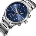 Мужские часы Lee Cooper LC08042.390 выполнены в классическом стиле и сочетают строгий дизайн с надёжным механизмом. Модель оснащена кварцевым механизмом , обеспечивающим точность хода. Корпус круглой формы имеет размер 43 мм , изготовлен из металла, браслет — стальной миланского плетения , что гарантирует комфорт при ношении. Циферблат синего цвета дополнен индексами , а также функциями отображения даты , дня недели , 24-часового индикатора и второго часового пояса второй часовой поясВторой часовой поясФункция, позволяющая отображать время двух часовых поясов одновременно.. Защиту циферблата обеспечивает минеральное стекло минеральное стеклоМинеральное стеклоМинеральное стекло представляет собой искусственно выращенный минерал кварца. Такое стекло отличается особой устойчивостью к повреждениям и царапинам. Уступает по некоторым качествам сапфировому стеклу., устойчивое к мелким механическим повреждениям — его можно легко отполировать при появлении царапин. Водозащита 5 АТМ позволяет использовать часы в повседневных условиях без риска повреждения от случайных брызг воды. Это сочетание классического дизайна, качества и функциональности для уверенных в себе мужчин.