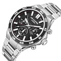 Мужские наручные часы Lee Cooper LC08067.350 из коллекции Classic оснащены кварцевым механизмом японского производства, что обеспечивает высокую точность хода и надежность. Корпус часов выполнен из нержавеющей стали серебристого цвета, что делает их устойчивыми к внешним воздействиям и придает благородный вид. Циферблат черного цвета украшен классическими стрелками и индексами, гармонично дополняющими общий дизайн модели. Для защиты циферблата используется минеральное стеклоМинеральное стеклоМинеральное стекло представляет собой искусственно выращенный минерал кварца. Такое стекло отличается особой устойчивостью к повреждениям и царапинам. Уступает по некоторым качествам сапфировому стеклу., устойчивое к царапинам и механическим повреждениям. Корпус имеет круглую форму диаметром 45 мм, что делает часы заметными и подходящими. Браслет оснащен раскладной застёжкойРаскладная застёжкаТакой тип застёжки используется только на браслетах из металла. Она никогда не раскрывается полностью, происходит разделение на 2 и более частей. Раскладывающая застёжка снизит вероятность потери часов к минимуму., обеспечивающим комфортное и безопасное ношение. Часы обладают водонепроницаемостью до 50 метров (5 АТМ), что позволяет использовать их в повседневной жизни, включая контакт с водой при мытье рук или дожде. Эти часы станут идеальным выбором для мужчин, ценящих стиль, качество и функциональность.