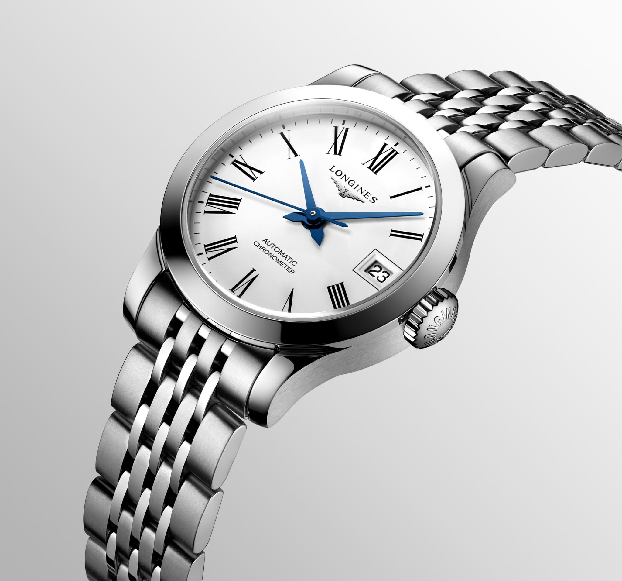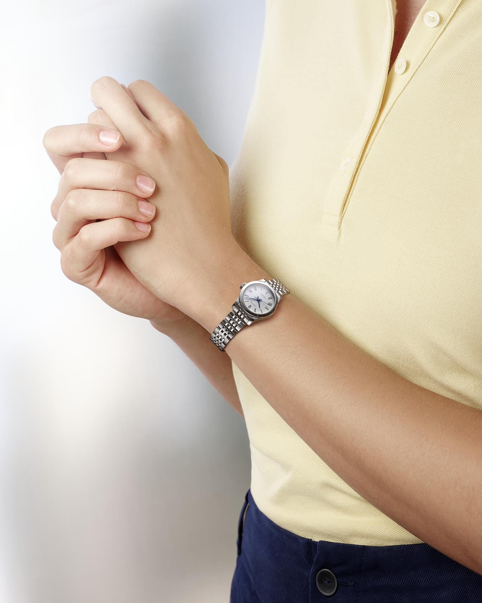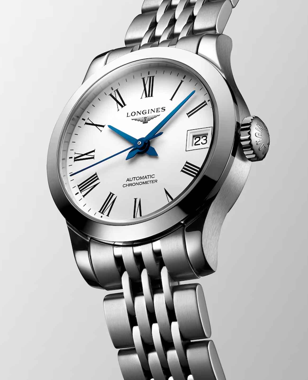 Женские швейцарские механические часы Longines Record Collection L2.320.4.11.6 – аксессуар в классическом стиле. Швейцарский автоматический механизм L592.4 с резервом хода до 45 часов за высокую точность хода отмечен официальным сертификатом хронометра COSCСертификат COSCОфициальный сертификат, подтверждающий то, что часы ходят с особо высокой точностью. Для получения документа часы подвергаются тестовым испытаниям, разработанным швейцарским институтом тестирования хронометров COSC. Допустимая норма для механических часов -4/+6 секунд в день, для кварцевых моделей +/- 0,07 секунд в день.. Сапфировое стеклоСапфировое стеклоПрочный и надёжный материал из кристалла сапфира синтетического происхождения, характеризующийся особой твёрдостью и устойчивостью к царапинам и повреждениям. дополнено антибликовым покрытиемАнтибликовое покрытиеСлой оксида металла в 0,13-0,3 микрон, благодаря которому стекло часов не бликует и не отражает свет. Антибликовое покрытие уменьшает отражение света в 10 раз, обеспечивая отличную читаемость показателей циферблата.. Браслет из нержавеющей стали с тройной застежкой с системой блокировки и кнопкой сводит к минимуму вероятность потери. На метке 3 часов расположена апертура даты. Водозащита 30 метров, позволит защитить корпус от случайных брызг или капель дождя. Прозрачная задняя крышка открывает обзор на слаженную работу механизма. Стальной браслет на застёжке «бабочка» с кнопкамиЗастёжка "бабочка"Такой вид застёжки дополняется предохранителями, помогающими избежать случайного раскрытия браслета. Обладают изящным исполнением. .