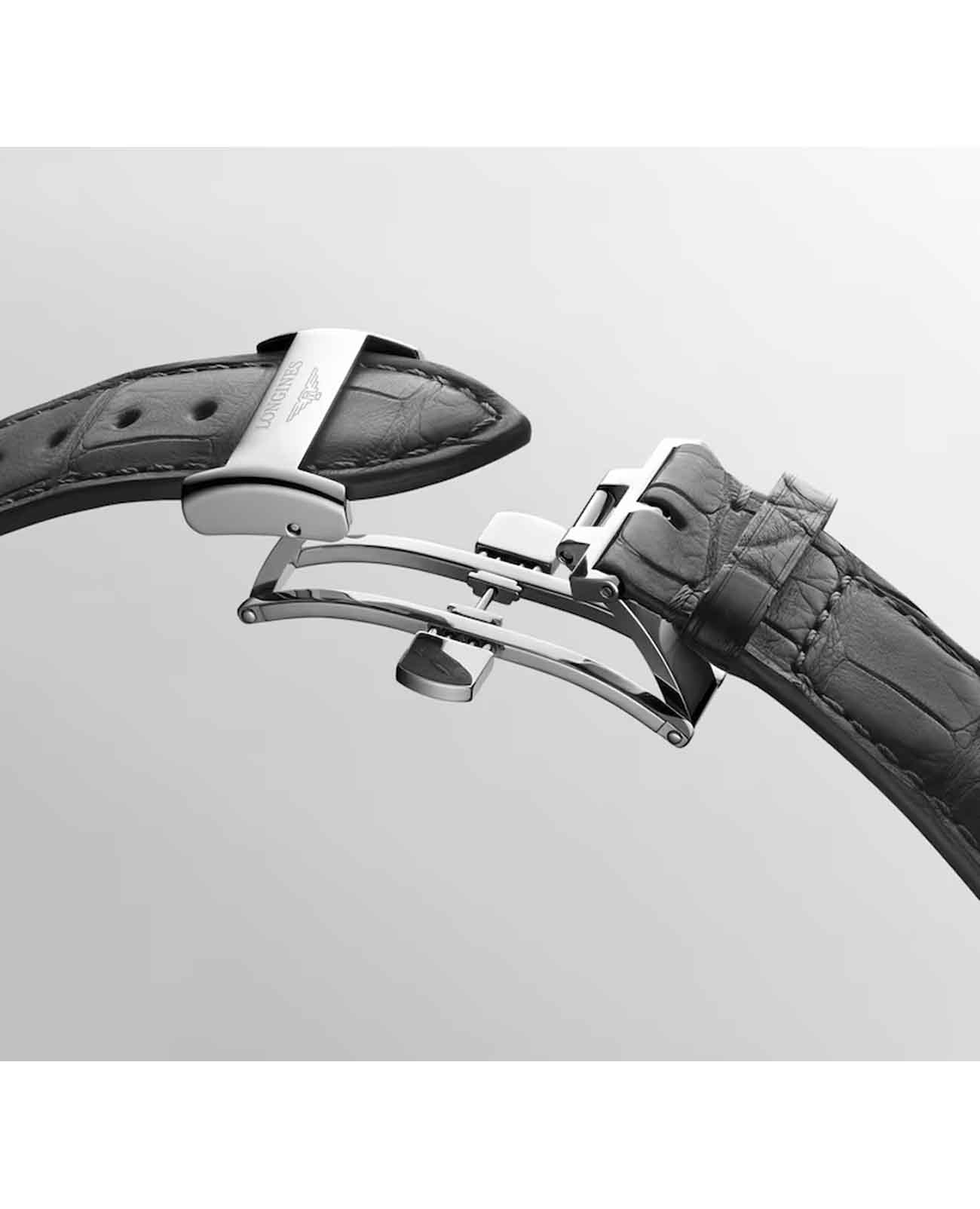 Мужсике швейцарские механические часы-хронографХронографФункция позволяет измерять отрезки времени с особой точностью: часы, минуты, секунды. Верным признаком хронографа является наличие на циферблате 3 дополнительных окошек-счётчиков. с автоподзаводом Longines Master Collection L2.773.4.61.2. Сапфировое стеклоСапфировое стеклоПрочный и надёжный материал из кристалла сапфира синтетического происхождения, характеризующийся особой твёрдостью и устойчивостью к царапинам и повреждениям. устойчивое к появлению царапин, обладающее высокой прозрачностью. Корпус часов изготовлен из нержавеющей стали. Функции: часы, минуты, малая секундная стрелка с 24-часовым индикатором в положении 9 часов. Дату показывает центральная стрелка с серповидным наконечником. Указатель фаз Луны в положении 6 часов. Прозрачная задняя крышка. Класс водозащиты: 30 метров, позволит защитить корпус от случайных брызг или капель дождя. Ремешок из кожи аллигатора на раскладной застёжкеРаскладная застёжкаТакой тип застёжки используется только на браслетах из металла. Она никогда не раскрывается полностью, происходит разделение на 2 и более частей. Раскладывающая застёжка снизит вероятность потери часов к минимуму..