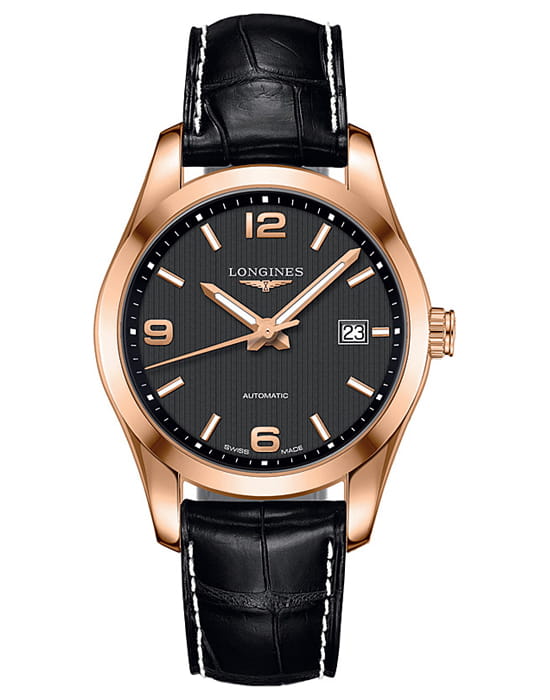 Мужские золотые швейцарские часы Longines Conquest L27858563, механический механизм (автоматический калибр) с высокой точностью. Сапфировое стекло устойчивое к появлению царапин, обладающее высокой прозрачностью. Класс водозащиты: 50 метров, позволит защитить корпус от случайных брызг или капель дождя. Корпус часов изготовлен из золота, цвета.