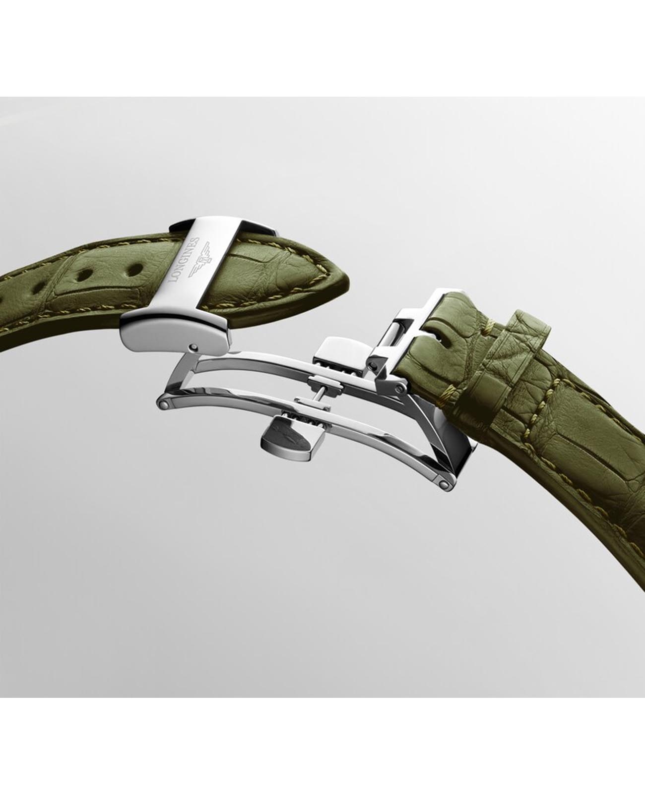 Швейцарские механические часы Longines Master Collection L2.893.4.09.2. Сапфировое стеклоСапфировое стеклоПрочный и надёжный материал из кристалла сапфира синтетического происхождения, характеризующийся особой твёрдостью и устойчивостью к царапинам и повреждениям. устойчивое к появлению царапин, обладающее высокой прозрачностью. Корпус часов изготовлен из нержавеющей стали. Окошко даты в положении 3 часа. Автоматический механизм с частотой баланса 25 200 полуколебаний в час и запасом хода, которого хватает примерно на 72 часа работы. Класс водозащиты: 30 метров, позволит защитить корпус от случайных брызг или капель дождя. Ремешок из кожи аллигатора на застёжке «бабочка» с кнопкамиЗастёжка "бабочка"Такой вид застёжки дополняется предохранителями, помогающими избежать случайного раскрытия браслета. Обладают изящным исполнением. .