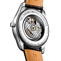 Узорчатый циферблат с арабскими цифрами обеспечивает идеальную читаемость показателей. Швейцарский автоматический механизм L897 с запасом хода на 64 часа отличается высокой точностью хода. Через скелетонизированную заднюю крышку с сапфировым стеклом можно наблюдать за работой механизма. На метке 3 часов расположено окошко годового календаря с указанием месяца.