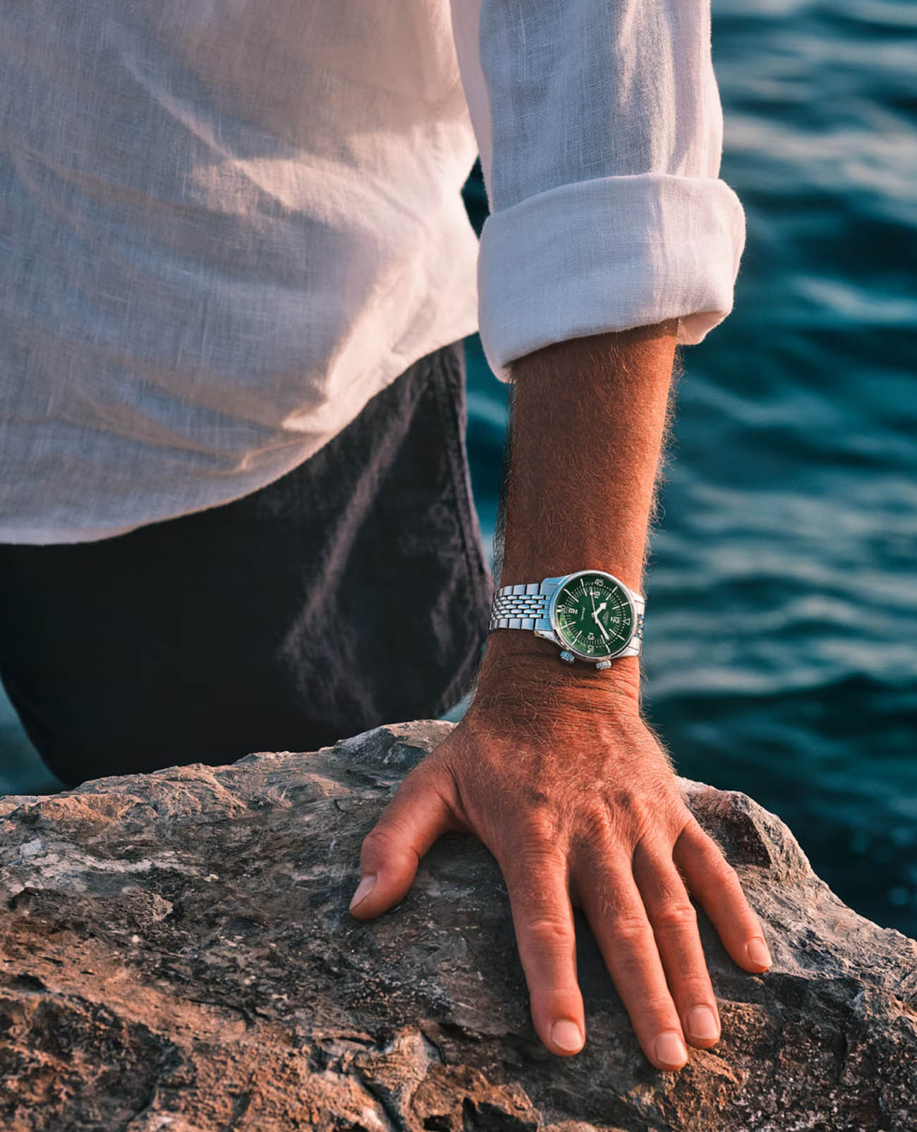 Швейцарские мужские механические часы Longines Legend Diver L3.764.4.06.6 – спортивный аксессуар в дайверском стиле. Циферблат отличается улучшенной читабельностью показателей благодаря крупной индикации времени, стрелками и метками с люминесцентной подсветкойЛюминесцентное покрытиеПозволяет считывать показания времени в темноте. Производители наносят на стрелки, часовые индексы, безель или поверхность циферблата светонакопительный состав, дающий холодное свечение. Super-LumiNova, антибликовому покрытиюАнтибликовое покрытиеСлой оксида металла в 0,13-0,3 микрон, благодаря которому стекло часов не бликует и не отражает свет. Антибликовое покрытие уменьшает отражение света в 10 раз, обеспечивая отличную читаемость показателей циферблата. сапфирового стеклаСапфировое стеклоПрочный и надёжный материал из кристалла сапфира синтетического происхождения, характеризующийся особой твёрдостью и устойчивостью к царапинам и повреждениям., устойчивого к мелким механическим повреждениям. Швейцарский автоматический механизм L888 имеет запас хода на 72 часа. Часы укомплектованы стальным браслетом с раскладывающейся застежкой из стали, превосходно дополняющим эксклюзивный образ модели. Водозащита 300 метров, позволит плавать, нырять и заниматься другими водными видами спорта. Стальной браслет на застёжке-бабочке с кнопкамиЗастёжка "бабочка"Такой вид застёжки дополняется предохранителями, помогающими избежать случайного раскрытия браслета. Обладают изящным исполнением. .