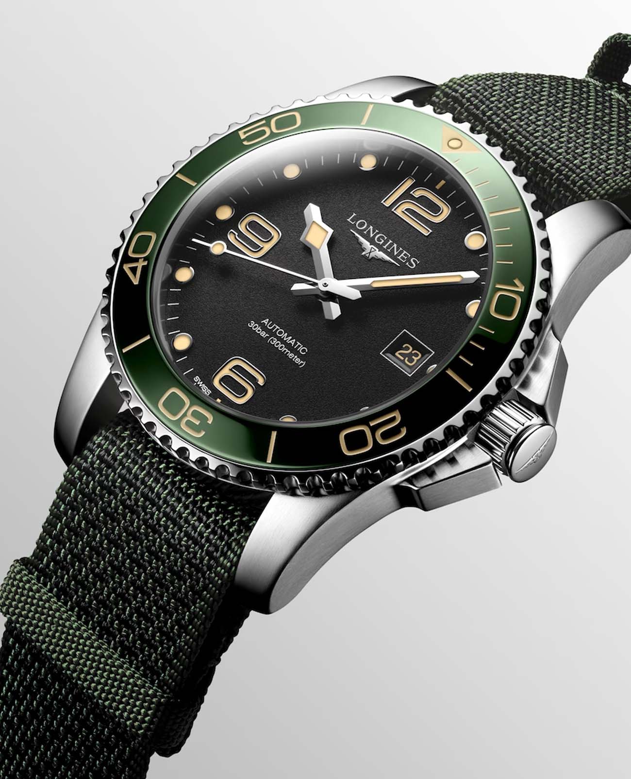 Швейцарские механические часы унисекс для дайвинга Longines HydroConquest L3.781.4.05.2. Сапфировое стеклоСапфировое стеклоПрочный и надёжный материал из кристалла сапфира синтетического происхождения, характеризующийся особой твёрдостью и устойчивостью к царапинам и повреждениям. с многослойным антибликовым покрытием с обеих сторон, устойчивое к появлению царапин, обладающее высокой прозрачностью. Корпус часов изготовлен из стали. Вращающийся безельБезельВнешний ободок, закрепляющий стекло. В спортивных часах так называется поворотное кольцо с делениями на циферблате, выполняет роль таймера – замеряет отрезки времени на шкале. Неподвижный безель – элемент декора. Однонаправленно вращающийся безель на дайверских часах позволяет фиксировать моменты погружения и выныривания на поверхность. из стали и керамики, защищенный от царапин, никогда не изнашивается и не выцветает. Стрелки и метки с люминесцентным покрытиемЛюминесцентное покрытиеПозволяет считывать показания времени в темноте. Производители наносят на стрелки, часовые индексы, безель или поверхность циферблата светонакопительный состав, дающий холодное свечение.. Окошко даты находится в положении 3 часов. Класс водозащиты: 300 метров, позволит плавать, нырять и заниматься другими водными видами спорта. Синтетический ремешок на стандартной застежке.