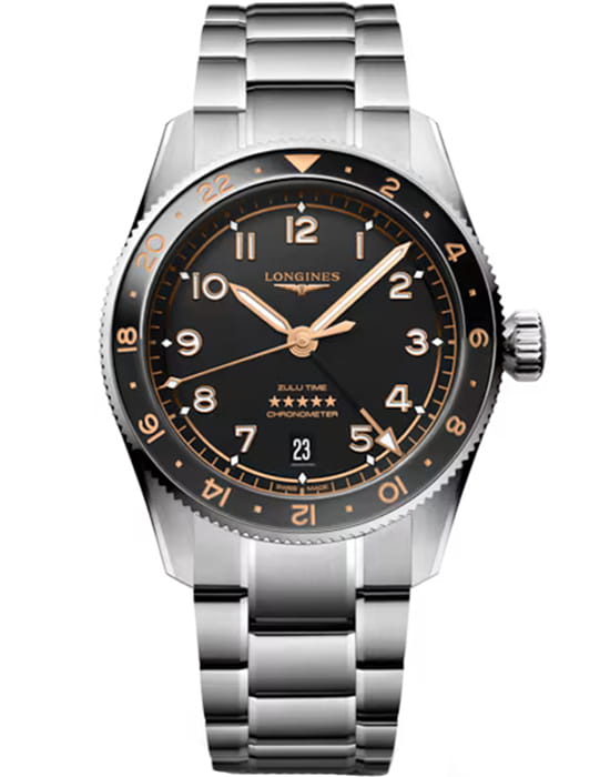Швейцарские механические часы LONGINES SPIRIT ZULU TIME L3.802.4.50.6. - воплощает в себе вековой опыт бренда в производстве часов с несколькими часовыми поясами. Своим происхождением и названием она обязана первым наручным часам LONGINES с двумя часовыми поясами, выпущенным в 1925 году, на циферблате которых был изображен флаг Зулуленда. Сапфировое стеклоСапфировое стеклоПрочный и надёжный материал из кристалла сапфира синтетического происхождения, характеризующийся особой твёрдостью и устойчивостью к царапинам и повреждениям. c антибликовым покрытиемАнтибликовое покрытиеСлой оксида металла в 0,13-0,3 микрон, благодаря которому стекло часов не бликует и не отражает свет. Антибликовое покрытие уменьшает отражение света в 10 раз, обеспечивая отличную читаемость показателей циферблата. с обеих сторон, устойчивое к появлению царапин, обладающее высокой прозрачностью. Корпус часов изготовлен из нержавеющей стали, диаметром 42 мм и толщиной 14,10 мм. Вращающийся в двух направлениях безельБезельВнешний ободок, закрепляющий стекло. В спортивных часах так называется поворотное кольцо с делениями на циферблате, выполняет роль таймера – замеряет отрезки времени на шкале. Неподвижный безель – элемент декора. Однонаправленно вращающийся безель на дайверских часах позволяет фиксировать моменты погружения и выныривания на поверхность. из стали и керамики, защищает от царапин, никогда не изнашивается и не выцветает. Стрелки и метки с люминесцентным покрытиемЛюминесцентное покрытиеПозволяет считывать показания времени в темноте. Производители наносят на стрелки, часовые индексы, безель или поверхность циферблата светонакопительный состав, дающий холодное свечение. Super-LumiNova® обеспечивает отличную видимость в темноте. Класс водозащиты: 100 метров позволит плавать, нырять и заниматься другими водными видами спорт. Стальной браслет на раскладной застёжкеРаскладная застёжкаТакой тип застёжки используется только на браслетах из металла. Она никогда не раскрывается полностью, происходит разделение на 2 и более частей. Раскладывающая застёжка снизит вероятность потери часов к минимуму. обеспечивает комфортное ношение. Каждая модель оснащена эксклюзивным калибром LONGINES с кремниевой пружиной баланса, устойчивым к воздействию магнитных полей и сертифицированным COSCСертификат COSCОфициальный сертификат, подтверждающий то, что часы ходят с особо высокой точностью. Для получения документа часы подвергаются тестовым испытаниям, разработанным швейцарским институтом тестирования хронометров COSC. Допустимая норма для механических часов -4/+6 секунд в день, для кварцевых моделей +/- 0,07 секунд в день. как хронометр.