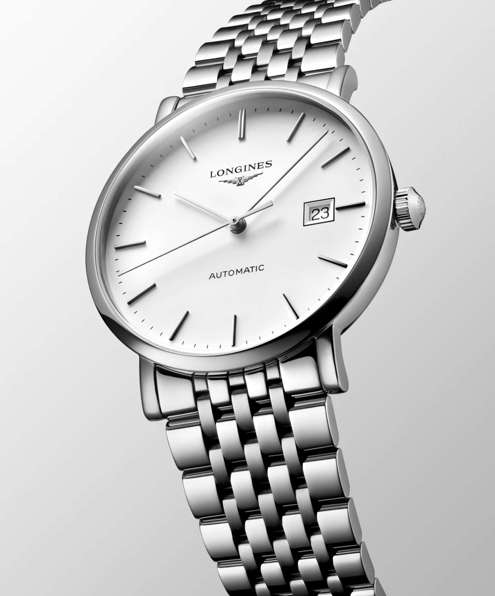 Изысканные мужские часы Longines Elegant Collection L4.910.4.19.6 — это воплощение спокойной роскоши и вечного стиля. Все элементы циферблата подчеркивают элегантность и классический вкус модели. Корпус часов изготовлен из нержавеющей стали, диаметром 39 мм. Защиту циферблата обеспечивает прочное сапфировое стеклоСапфировое стеклоПрочный и надёжный материал из кристалла сапфира синтетического происхождения, характеризующийся особой твёрдостью и устойчивостью к царапинам и повреждениям. с антибликовым покрытиемАнтибликовое покрытиеСлой оксида металла в 0,13-0,3 микрон, благодаря которому стекло часов не бликует и не отражает свет. Антибликовое покрытие уменьшает отражение света в 10 раз, обеспечивая отличную читаемость показателей циферблата. гарантирующее четкость показаний. Автоматический механизм L888 обеспечивает высокую точность и простоту использования. Водостойкость до 30 метров позволит плавать, нырять и заниматься другими водными видами спорта. Изысканный браслет выполнен из нержавеющей стали на застёжке-бабочке с кнопкамиЗастёжка "бабочка"Такой вид застёжки дополняется предохранителями, помогающими избежать случайного раскрытия браслета. Обладают изящным исполнением. , обеспечивающей комфортное ношение и надёжную фиксацию на запястье. Окошко даты в положении 3 часа. Коллекция The Elegant Collection сочетает в себе классическую элегантность и современный подход к дизайну, делая эти часы универсальным аксессуаром — как для торжественных случаев, так и для повседневной жизни.