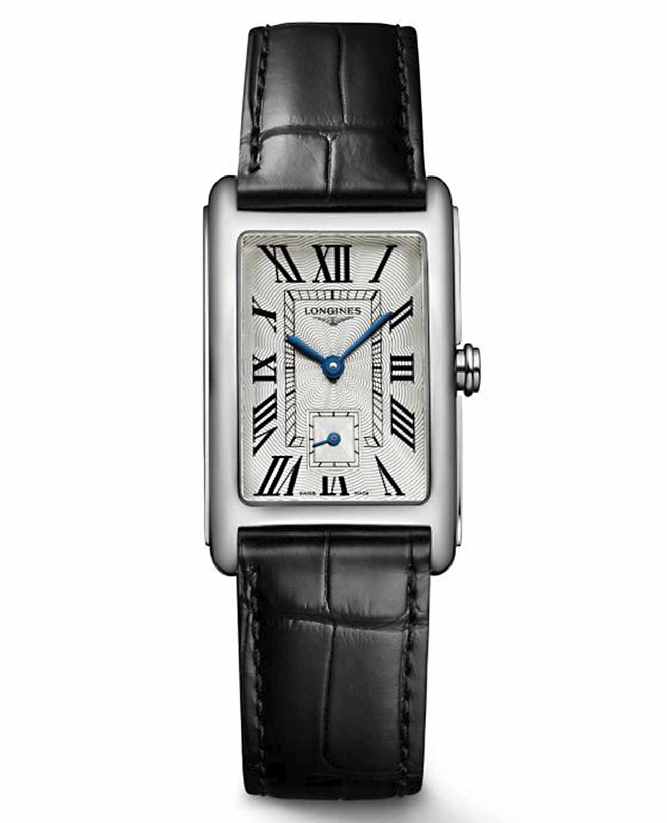 Женские швейцарские часы Longines DolceVita L5.512.4.71.0, кварцевый механизм с высокой точностью. Сапфировое стеклоСапфировое стеклоПрочный и надёжный материал из кристалла сапфира синтетического происхождения, характеризующийся особой твёрдостью и устойчивостью к царапинам и повреждениям. устойчивое к появлению царапин, обладающее высокой прозрачностью. Корпус часов изготовлен из нержавеющей стали. Метки в виде римских цифр. Малая секундная стрелка в положении 6 часов. Класс водозащиты: 30 метров, позволит защитить корпус от случайных брызг или капель дождя. Кожаный ремешок на стандартной застежке.