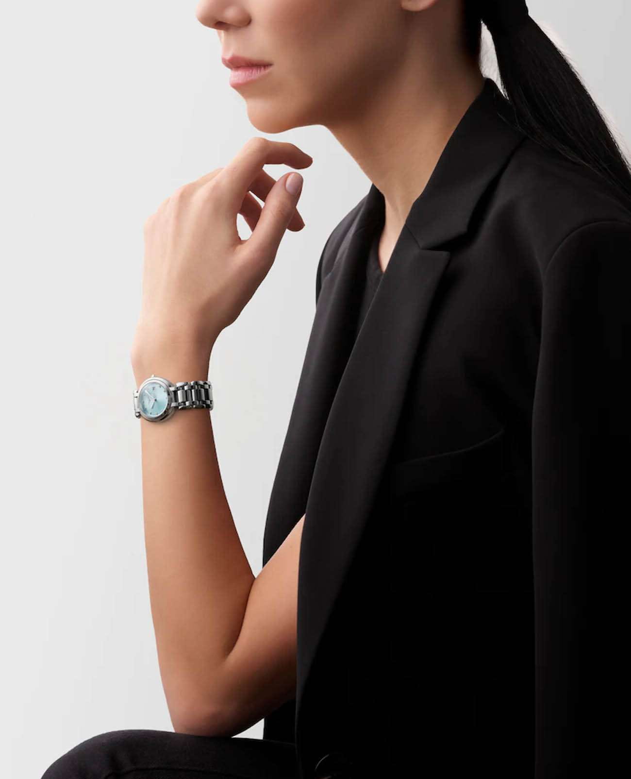 Часы Longines PrimaLuna L8.122.4.90.6 воплощают элегантность и женственность, вдохновлённые небесными мотивами. Корпус диаметром 30 мм выполнен из нержавеющей стали и обладает водозащитой до 3 бар (30 метров). Голубой циферблат с солнечным узором украшен 11 бриллиантовыми часовыми метками общим весом 0,044 карата и серебристыми полированными стрелками. Окошко даты расположено в позиции «3 часа». Циферблат защищён сапфировым стекломСапфировое стеклоПрочный и надёжный материал из кристалла сапфира синтетического происхождения, характеризующийся особой твёрдостью и устойчивостью к царапинам и повреждениям. с антибликовым покрытием. Модель оснащена кварцевым механизмом Longines L152, обеспечивающим точное отображение времени и даты. Браслет из нержавеющей стали с застёжкой бабочкойЗастёжка "бабочка"Такой вид застёжки дополняется предохранителями, помогающими избежать случайного раскрытия браслета. Обладают изящным исполнением. подчёркивает утончённый стиль модели. Эти часы идеально подходят для тех, кто ценит утончённую элегантность и вечные классические формы.