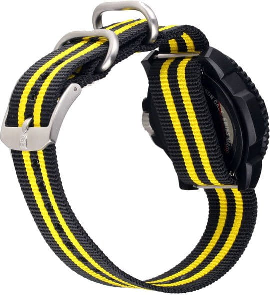 Эффектные швейцарские наручные часы. 12-ти и 24-х часовой формат времени. Безель вращается в одном направлении. Задняя крышка из усиленного карбона закреплена стальными винтами. Заводная головка с защитой выполнена из стали. В комплекте: два сменных ремешка, инструмент для их замены и компас. Материал корпуса: пластик, усиленный прессованный карбон; Материал браслета: текстильный, нейлоновый ремешок; Стекло: ; Водозащита: 200 м. (WR 200).