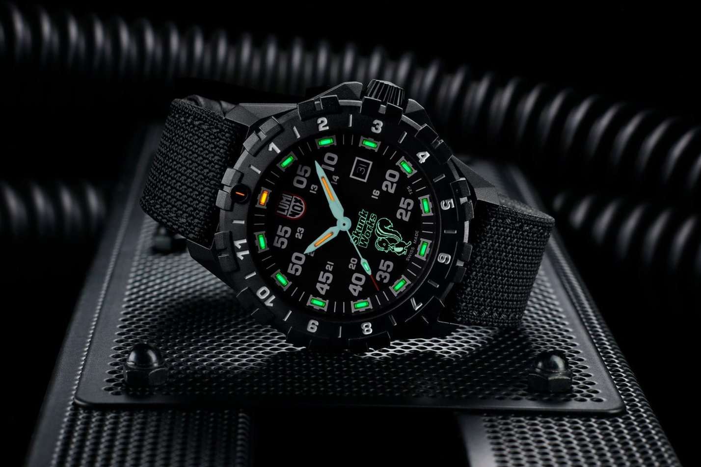 Часы Luminox F-117 NIGHTHAWK® x Skunk Works® Heritage XA.6442.H это замечательная интерпретация часов летчика. Вдохновленные пилотами, летавшими на истребителях-невидимках, и обратившиеся в Luminox почти 25 лет назад, эти часы AIR сочетают в себе культовый дизайн с инновациями Skunk Works®. Корпус выполнен из пластика, усиленного прессованным карбономКарбонОт «carbon», «carbone» - углерод, углепластик - полимерный композиционный материал из переплетённых под определенным углом между собой нитей углеродного волокна, применяется для изготовления лёгких, но прочных деталей. В часах часто используют для украшения циферблатов и ремешков. Так же карбон используется в изготовлении корпусов. Такие корпуса обладают антикоррозионным свойством, не поддаются электромагнитному излучению, обладают повышенной прочностью и противоударностью. CARBONOX, что делает его прочным и легким. Часы оснащены надежным кварцевым механизмом с калибром Ronda 515, который обеспечивает точность хода. Черный циферблат украшен арабскими цифрами, а также имеет окошко даты. Предусмотрены 12- и 24-часовые форматы времени для большего удобства. БезельБезельВнешний ободок, закрепляющий стекло. В спортивных часах так называется поворотное кольцо с делениями на циферблате, выполняет роль таймера – замеряет отрезки времени на шкале. Неподвижный безель – элемент декора. Однонаправленно вращающийся безель на дайверских часах позволяет фиксировать моменты погружения и выныривания на поверхность., вращающийся в одном направлении, снабжен светящейся меткой на 12 часов, что облегчает считывание информации в темноте. Технология LLTLLTLLT — это автономный механизм подсветки, основанный на использовании микроскопических газонаполненных элементов. Специальные герметичные капсулы из боросиликатного стекла, интегрированные в циферблат, генерируют свечение без необходимости подключения к внешним источникам энергии. Для их работы не требуется ни дополнительный свет, ни механическое воздействие (например, нажатие кнопки). Свечение возникает благодаря химическому процессу: реакция между тритием, заключенным в капсулах, и люминофорным покрытием создает стабильное автономное освещение. Технология обеспечивает энергетическую независимость и долговечность подсветки. обеспечивает превосходную ночную видимость на протяжении 25 лет. Завинчивающиеся задняя крышка с гравировкой и заводная головка с защитой выполнены из прочной нержавеющей стали 316L, что гарантирует долговечность и надежную защиту механизма. Эти часы обладают водозащитой до 200 метров, что делает их подходящими для различных водных условий. Cапфировое стеклоСапфировое стеклоПрочный и надёжный материал из кристалла сапфира синтетического происхождения, характеризующийся особой твёрдостью и устойчивостью к царапинам и повреждениям. с антибликовым покрытиемАнтибликовое покрытиеСлой оксида металла в 0,13-0,3 микрон, благодаря которому стекло часов не бликует и не отражает свет. Антибликовое покрытие уменьшает отражение света в 10 раз, обеспечивая отличную читаемость показателей циферблата. обеспечивает отличную видимость циферблата при любом освещении. Черный кевларовый ремешок с классической застежкой добавляет комфорт и удобство в эксплуатации.